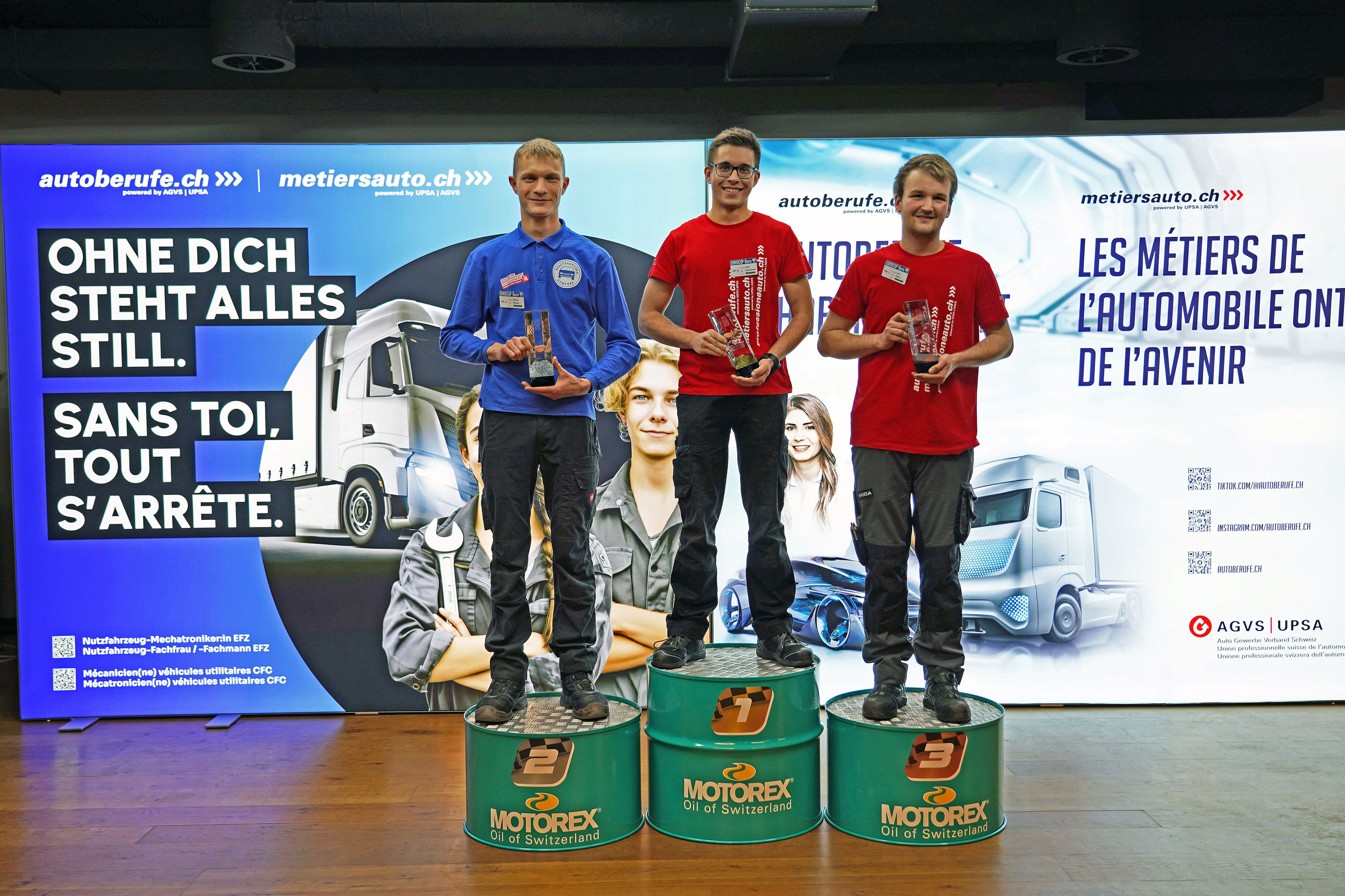 Auffällig war einmal mehr die bei aller Wettbewerbsspannung entspannte Atmosphäre: Es herrschte ein Geist des «Miteinanders statt Gegeneinanders», wie es Olivier Maeder, Geschäftsleiter Bildung des AGVS, erfreut zusammenfasste. Nach einem anstrengenden Tag ging es gegen Abend an die Siegerehrung. Maeder dankte für das Engagement der Kandidaten, der Expertinnen und Experten und des AGVS-Teams und begrüsste auch die zur Unterstützung der Kandidaten teils angereisten Verwandten. Das Podest erklommen ein Deutscher und zwei Schweizer. Platz 3 ging an Lars Hayoz aus Bonnefontaine FR, der bereits Vizeschweizermeister der SwissSkills 2025 war. Platz 2 holte Hannes Wirsing aus Deutschland. Platz 1 und somit das Ticket für die WorldSkills errang Janik Schumacher (20) aus Hergiswil bei Willisau LU.