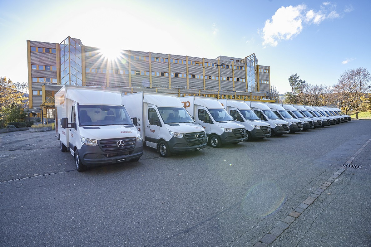 Der Online-Supermarkt coop.ch bezieht für die Endkundenbelieferung 29 neue Fahrgestelle von Mercedes-Benz. Aufgebaut sind die Sprinter mit einem Leichtbaukoffer und einer elektrischen 2-Zonen-Kühlanlage, welche primär mit Energie über die auf dem Dach des Kühlkoffers montierte Photovoltaikanlage betrieben wird.