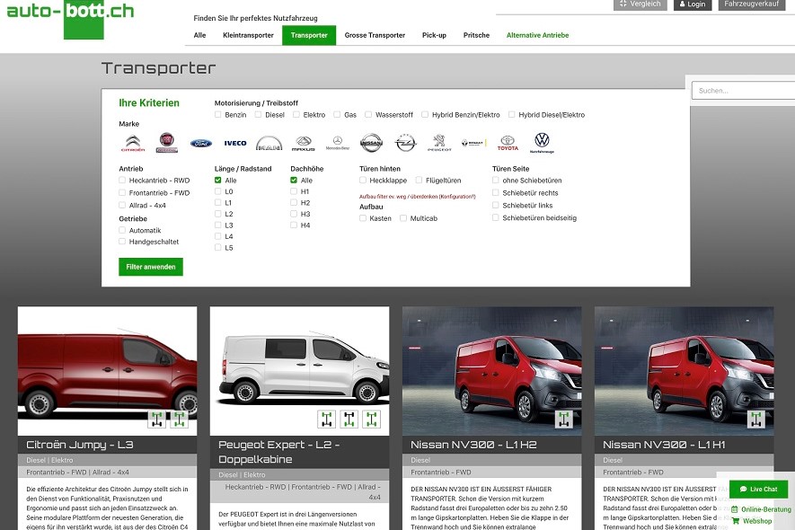 Damit Kunden den Überblick über die Nutzfahrzeugpalette behalten, stellt die Bott Schweiz AG unter der neuen Plattform auto-bott.ch neu eine umfassende Auswahl an beliebten Modellen im Nutzfahrzeug-Segment vor.