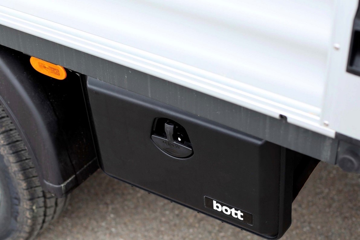 Pritschenfahrzeuge bieten gegenüber der geschlossenen Bauweise von Transportern einige wichtige Vorteile. Sperrige Güter und hochaufragende Geräte können einfach gesichert und transportiert werden. Der organisierte Transport von Werkzeugen und Kleinteilen gehört von Haus aus aber nicht zu den Stärken der Pritsche. Aus diesem Grund bietet bott mit dem bottTainer und dem Schutzgitter für Kabinenrückwände bereits praktische Unterbringungsmöglichkeiten an. Dieses Portfolio wird nun um Werkzeugkästen erweitert, die sich als Unterflurboxen einfach unterhalb der Pritsche montieren lassen.
