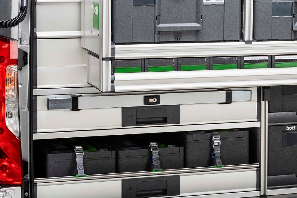 Es gibt viele gute Gründe, Gegenstände im Fahrzeug von Unbefugten fernhalten zu wollen. Ob Wertsachen, die Begehrlichkeiten wecken könnten, potenziell gefährliche Ausrüstung oder Dokumente, die nicht für fremde Augen bestimmt sind – mit der neuen bott vario3 Safeschublade stellen Sie sicher, dass Nichts in falsche Hände gerät. Ausgestattet mit einem äusserst robusten ABUS Panzerriegel und Zylinder­schloss, hält dieses in verschiedenen Grössen erhältliche Schubfach auch grober Gewalt zuverlässig stand.