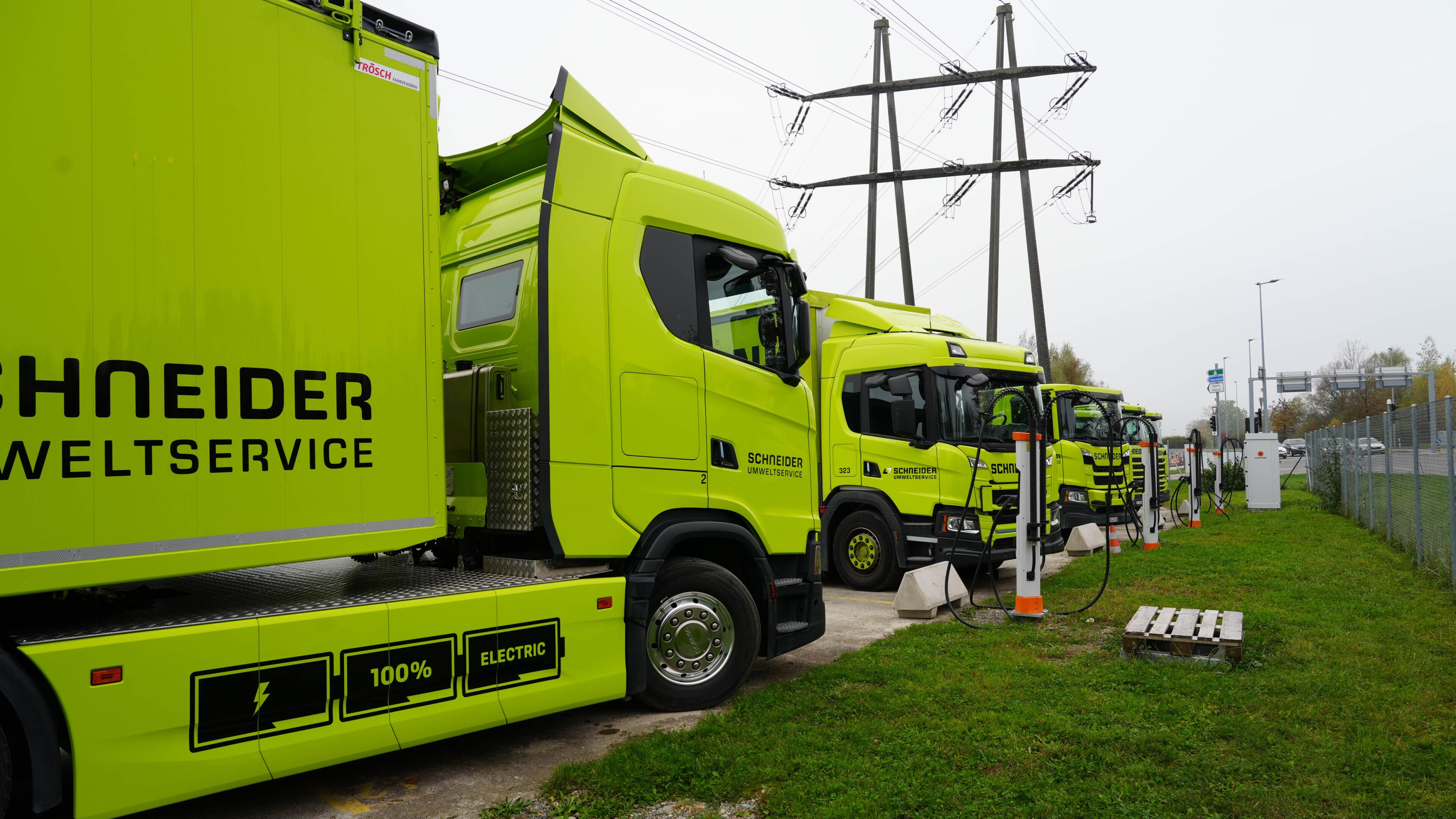 Der Fuhrpark an leichten und schweren Nutzfahrzeugen ist bei der Schneider Umweltservice AG über die vergangenen Jahre mit der Inbetriebnahme von neuen oder modernisierten Recycling-Center auf inzwischen 140 schwere Nutzfahrzeuge angewachsen, wovon alleine deren 42 in Volketswil stationiert sind. Um das hohe Ziel von 90 Prozent der Transportaufgaben bis 2028 rein elektrisch durchführen zu können, wird auch intensiv in Battery Electric Vehicle Fahrzeuge investiert. Derzeit sind bereits deren sieben BEV-Fahrzeuge tagtäglich für die Kunden und zwischen den einzelnen Recycling-Center unterwegs.