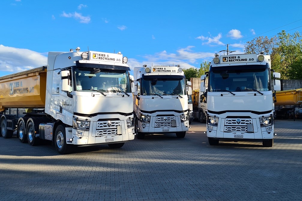 Die Kies & Recycling AG in Embrach hat ihre Flotte unlängst um drei weitere Renault Trucks erneuert. Das Dreiergespann an Renault Trucks C520 T6x4 ersetzt die gleiche Zahl ins Alter gekommene Lastwagen. Nach der Erstanschaffung eines Renault Trucks im Jahr 2019 umfasst die Flotte nun neu fünf Fahrzeuge des französischen Nutzfahrzeugherstellers.