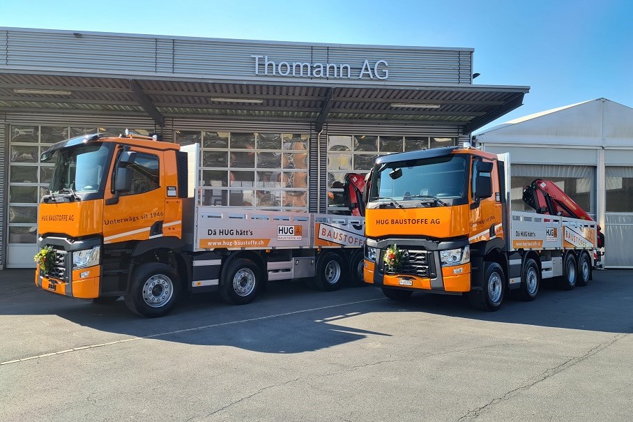 Die Hug Baustoffe AG in Nänikon hat ihren Fuhrpark mit drei Renault Trucks, zwei C520 P8x2 und einem T440 P6x2, modernisiert. Der Baustoffspezialist mit neun Standorten im Grossraum Zürich hält der Marke damit die Treue.