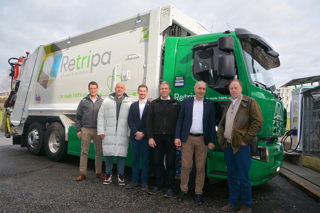 Die Renault E-Tech sind 12'459'639 km gefahren und haben 12'052 CO2 eingespart. «Das ist beträchtlich.» Für die elektrischen Kehrichtlastwagen stehen derzeit zwei 150-kWh-Ladestationen zur Verfügung. «Das war ein enormer Arbeitsaufwand, den wir in enger Partnerschaft mit der Romande Energie SA geleistet haben», sagte Xavier Mahue, der Generaldirektor der Retripa-Gruppe anlässlich der Präsentation von zweien der drei neuen Renault Trucks E-Tech D Wide, von denen einer im Einsatz stand. Im Partnerschaftsprojekt ist die Romande Energie Eigentümerin, welche sich für die Finanzierung und Installation der Solarzellen und Ladestationen verantwortlich zeichnet, während Retripa ihre Dachflächen zur Verfügung stellt. «Es braucht gemeinsame Anstrengungen.» Das Motto: «Vom Solarpanel zur Kreislaufwirtschaft».