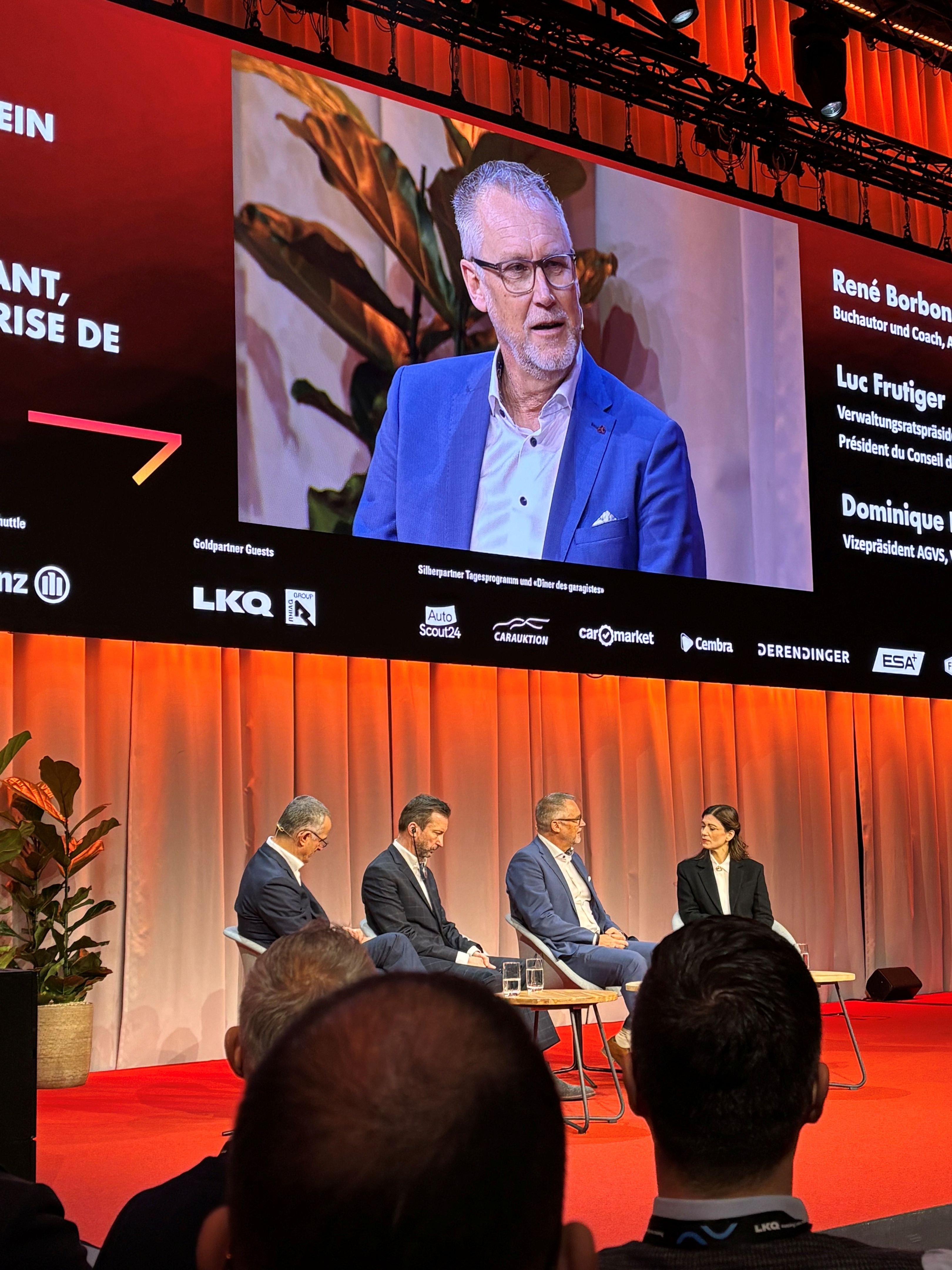 Auf dem „Tag der Schweizer Garagen“ der AGVS/UPSA am 21. Januar 2025 schilderte auch Vizepräsident Dominique Kolly auf einem Podium vor einer Rekordkulisse von Teilnehmern, wie in seinem Familienbetrieb über 25 Jahre die Kommunikation mit 100 Mitarbeitern gestaltet wird.