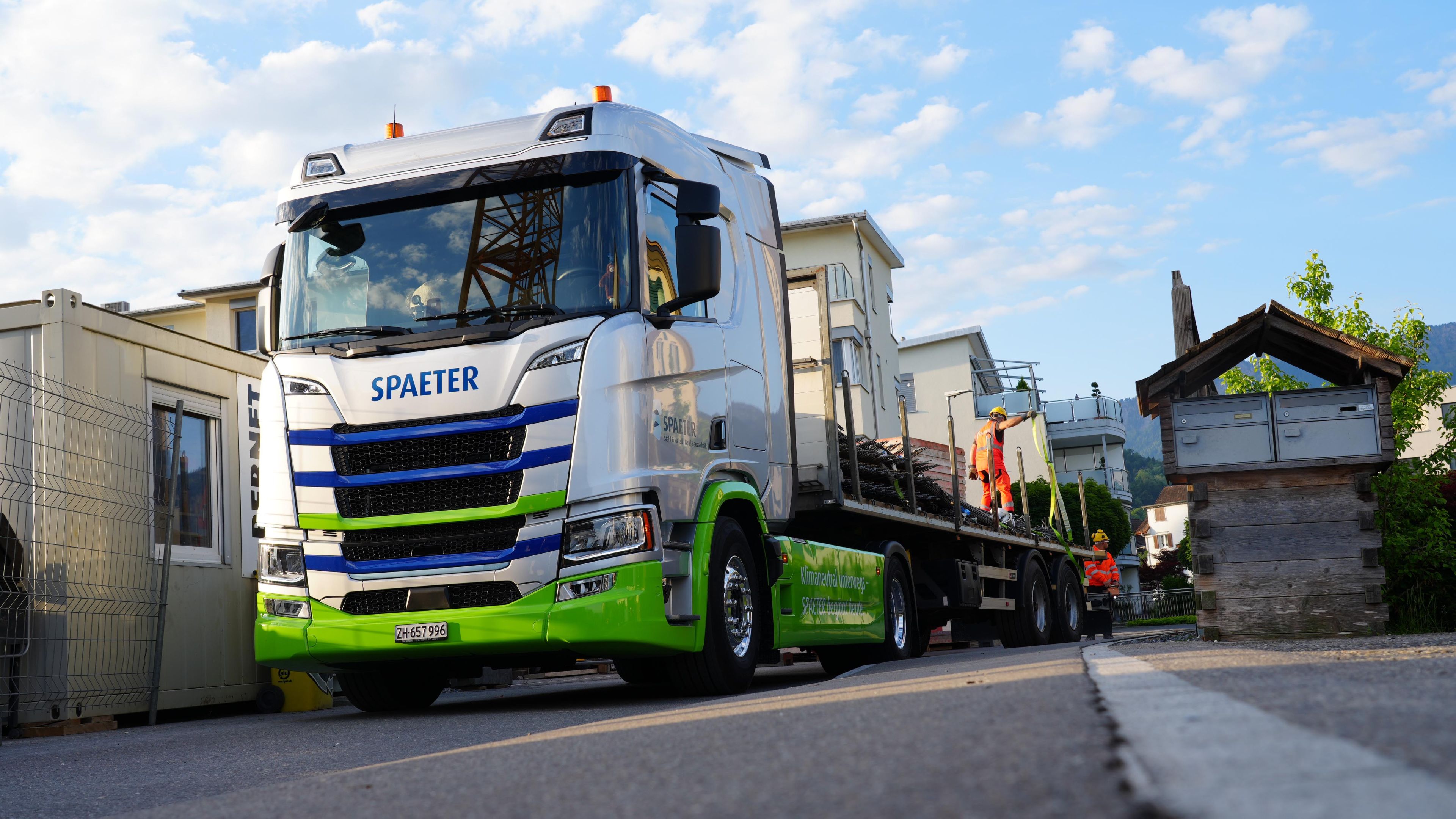 Dies kommt auch die Spaeter AG mit diversen Standorten und Niederlassungen in der ganzen Schweiz zu spüren. Die in den Bereichen Haustechnik, Stahl & Metall, Bau und Services tätige Unternehmung bekommt solche Anfragen immer häufiger auf den Tisch und so machte man sich schon vor Jahren erste Überlegungen, wie diese Herausforderung in Zukunft angegangen, aber auch gelöst werden kann. So entschied man sich bereits vor geraumer Zeit, eine erste, vollelektrische Scania Sattelzugmaschine anzuschaffen, um solche neuen Kundenbedürfnisse auch anbieten zu können.