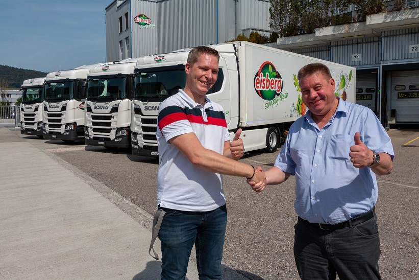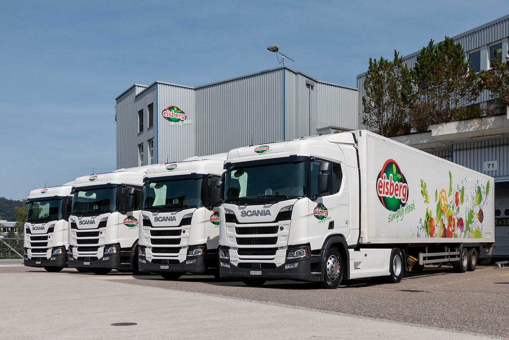 2021 durften die Verantwortlichen bei der Eisberg AG zum ersten Mal Scania Lastwagen in ihrer Fahrzeugflotte aufnehmen. Nicht nur einen, sondern gleich vier identische Scania R410 A 4x2 NA verstärken seither den modernen Fuhrpark und tragen Ihren Anteil dazu bei, dass die Gastrobranche und auch die Lebensmittel-Läden immer termingerecht mit Frischprodukten beliefert werden können. Dabei legen die Fahrzeuge im Jahresschnitt rund 100'000 km zurück, um eine stetig wachsende Kundschaft in der ganzen Schweiz bedienen zu können.