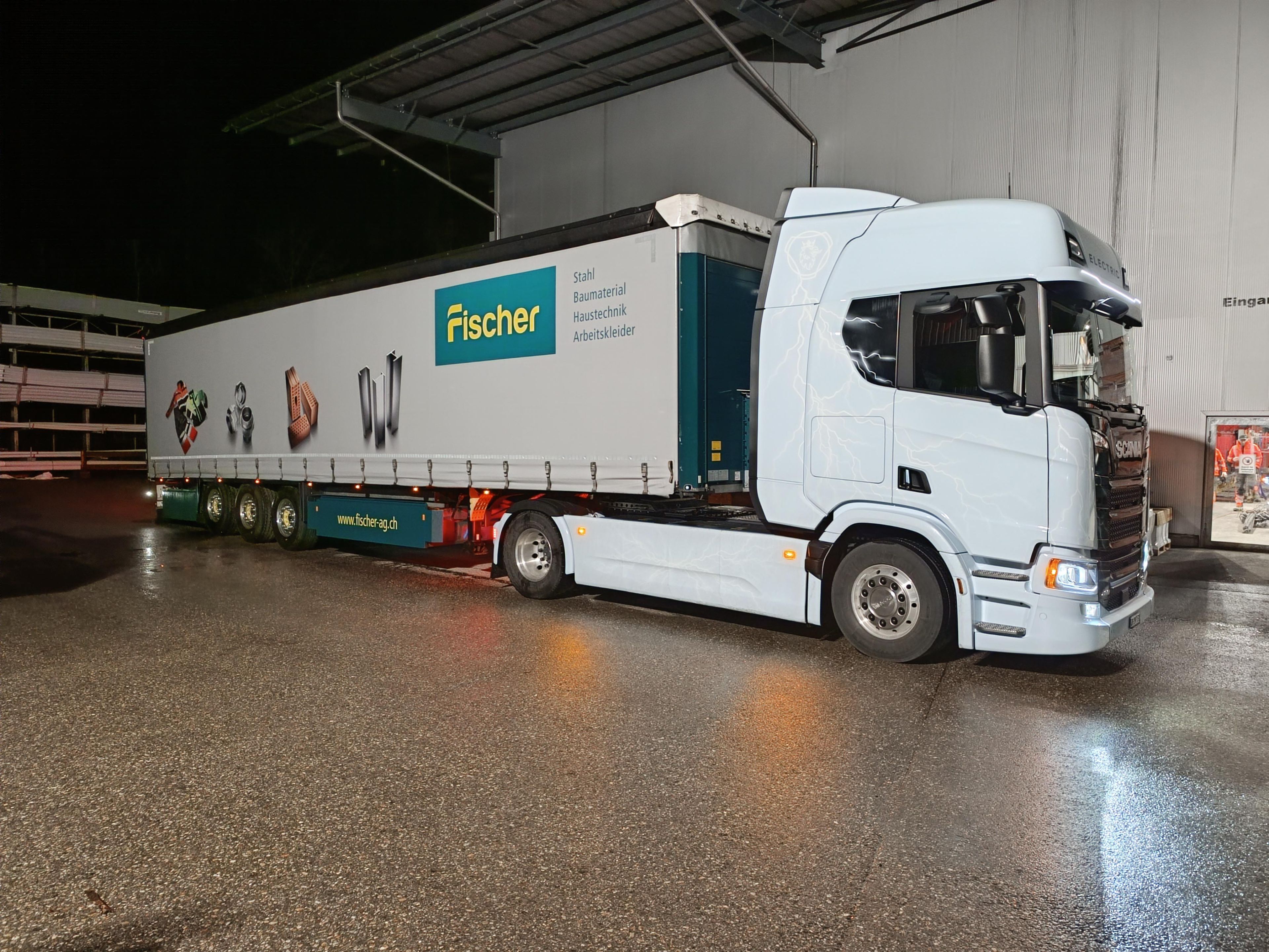 «Vor den beiden Testtagen mit der Battery Electric Vehicle Sattelzugmaschine von Scania war bei den Fahrern schon noch die eine oder andere Unsicherheit anzusehen, wie denn die bevorstehenden Liefertouren mit dem vollelektrischen Fahrzeug durchgeführt werden sollen,» so Adrian Egli, Disponent bei der Fischer & Cie. AG in Langnau.