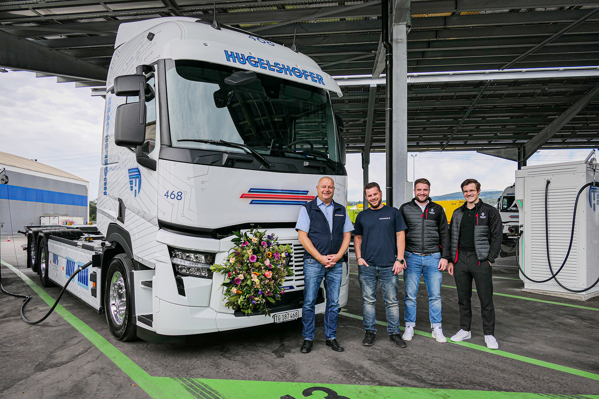 In Sachen Elektromobilität setzt die Hugelshofer Logistik AG in Frauenfeld neue Massstäbe. 30 Lastwagen der 200 Fahrzeuge starken Flotte sind vollelektrisch unterwegs, zwei Drittel davon stellt Renault Trucks. In die Ladeinfrastruktur hat das traditionsreiche Unternehmen sieben Millionen Franken investiert. Grund genug also, bei Martin Lörtscher, Geschäftsführer, und Erwin Gloor, Technischer Leiter, nachzuforschen.