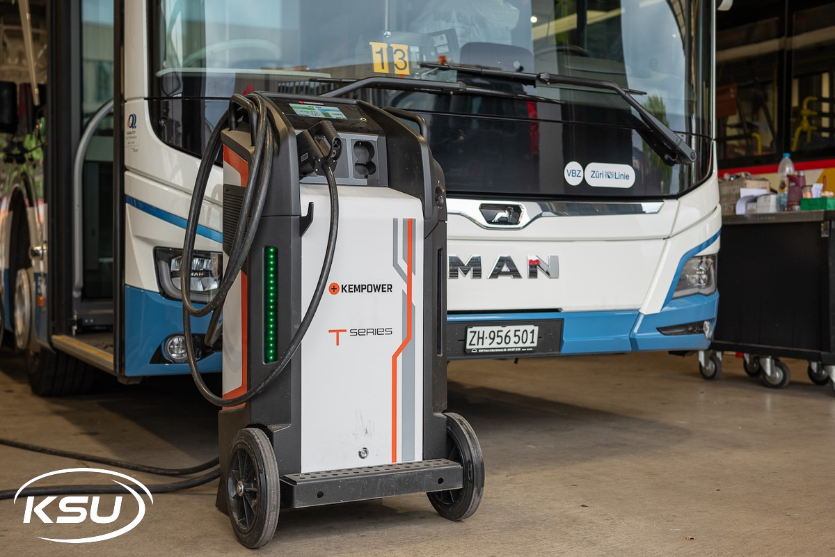 Die Geräte von Kempower sind schon bei einigen Kunden von KSU im Einsatz. Zum Beispiel bei der MAN Truck & Bus Schweiz AG in Otelfingen. Martin Bächli, Chefmechaniker von MAN hatte diverse Ladestationen im Test, bevor der Entscheid auf die Kempower T-800 mobile Schnell-Ladestation fiel. «Wir von der Werkstatt können bei der Wahl unseres Equipments mitentscheiden. Nach verschiedenen Testperioden hat die Kempower T-Serie am besten abgeschnitten.»