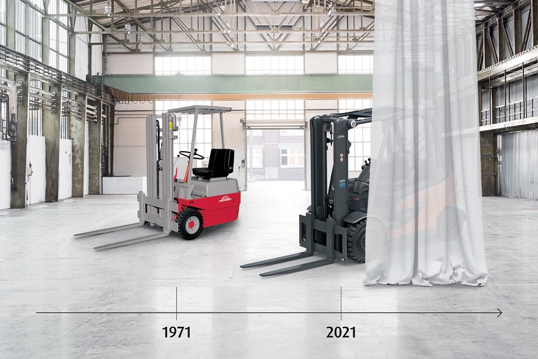 Linde Material Handling seit 50 Jahren mit Elektrostaplern