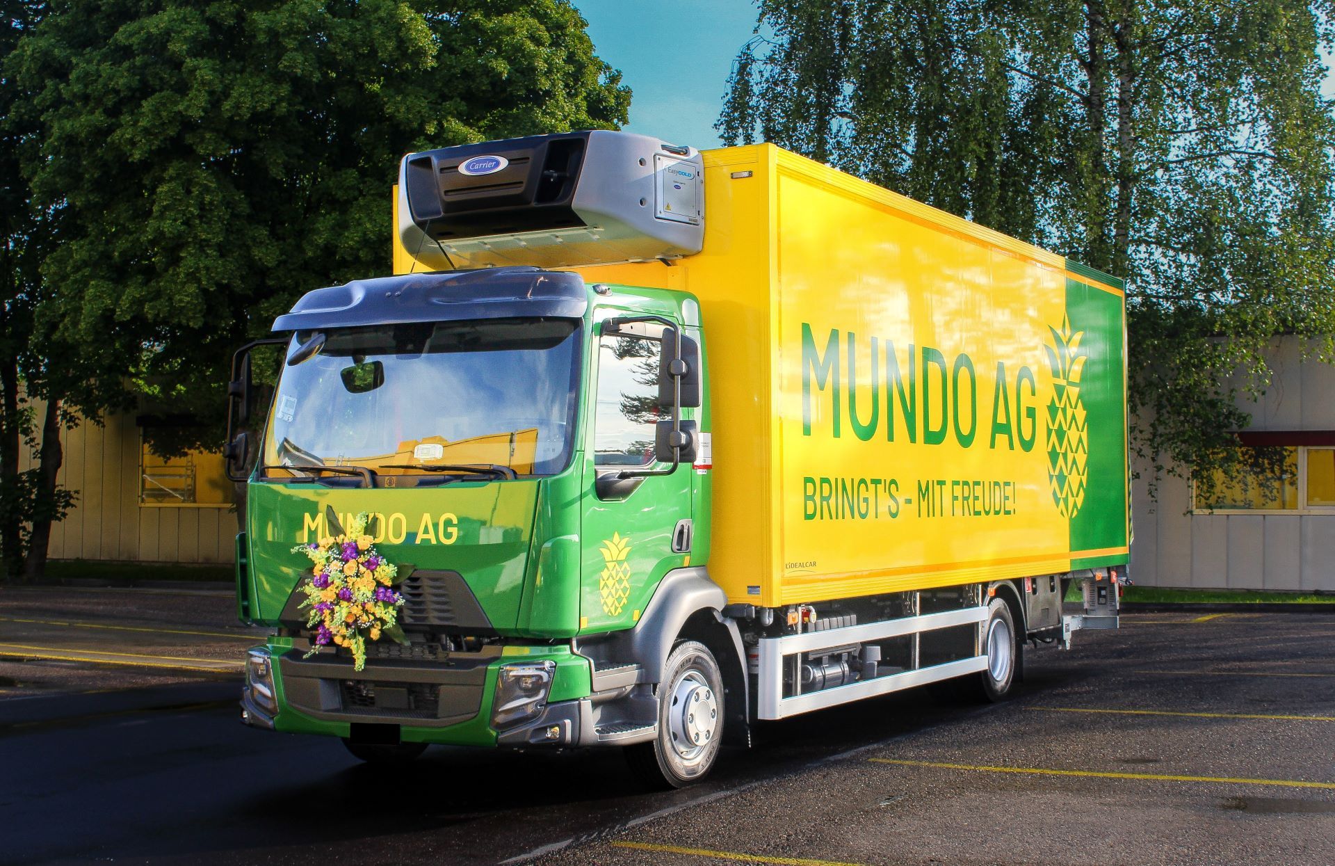 Die MUNDO AG betreibt an ihrem zentralen Lager am Hauptsitz in Rothenburg einen Fuhrpark von 32 leichten und 67 schweren Nutzfahrzeugen. Mit den neuen Renault Trucks entsprechen alle Fahrzeuge mindestens der Euro 6 Norm. Ein Schritt Richtung Ziel der CO2-Reduktion und weniger Emissionen. Mit 25 Fahrzeugen ist Renault Trucks in dieser Flotte gut vertreten. Alle 99 Einheiten des Fuhrparks sind als Zweizonenfahrzeuge ausgelegt. Die Logistik steht ganz im Zeichen der Kühlkette und Nachhaltigkeit.