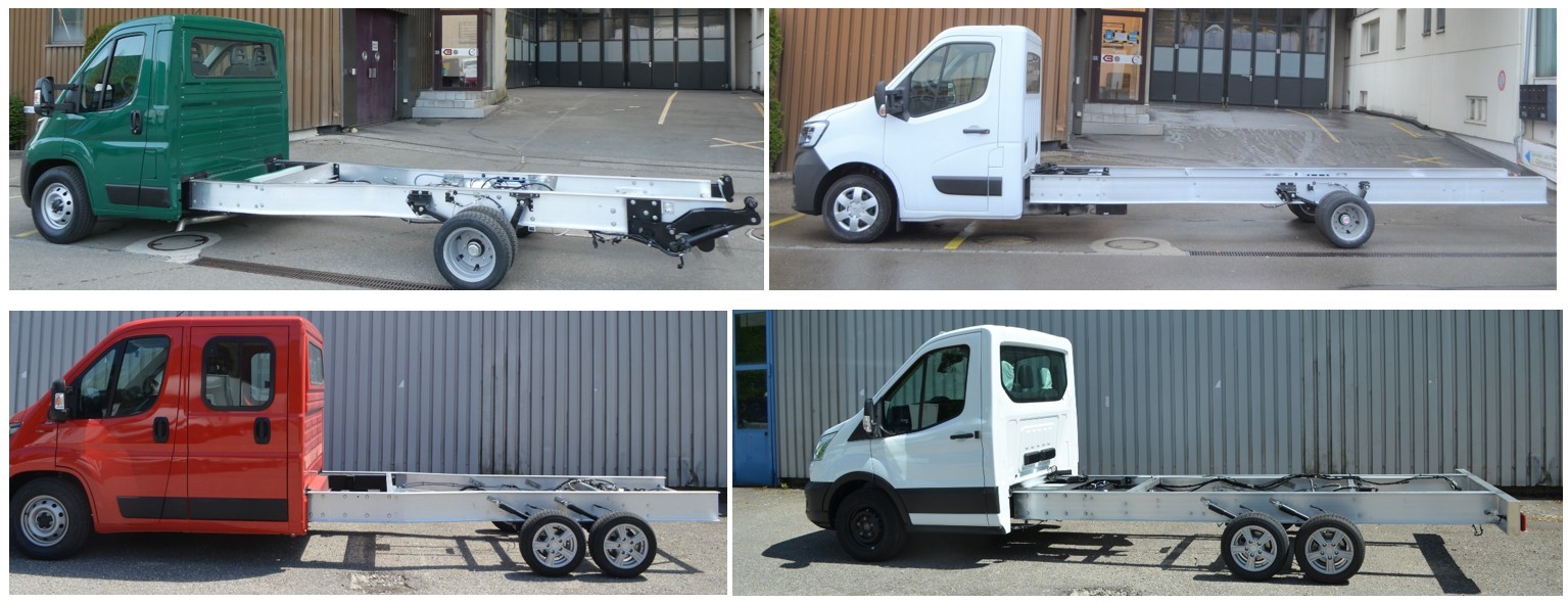 Aktuell bietet Baldinger Fahrzeugbau Chassis-Umbauten für die folgenden Fahrzeuge an: