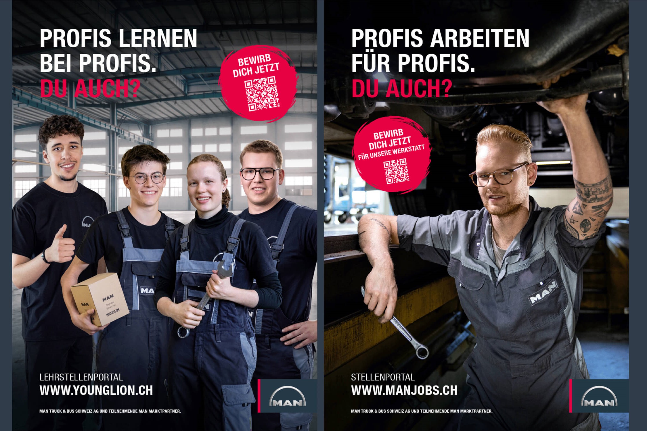 Um den angehenden Lernenden die Berufsbilder, die es in der Nutzfahrzeugbranche gibt, näher zu bringen, hat MAN zusammen mit den teilnehmenden MAN Partnern eine neue schweizweite HR-Kampagne lanciert.