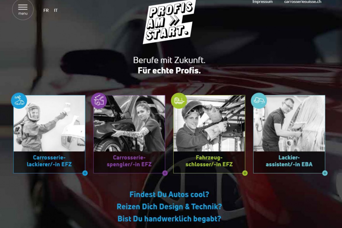 Auf der neuen Website finden interessierte Nachwuchskräfte unter dem Motto «Profis am Start» damit alle Informationen, wenn sie in den Carrosserieberuf einsteigen möchten.