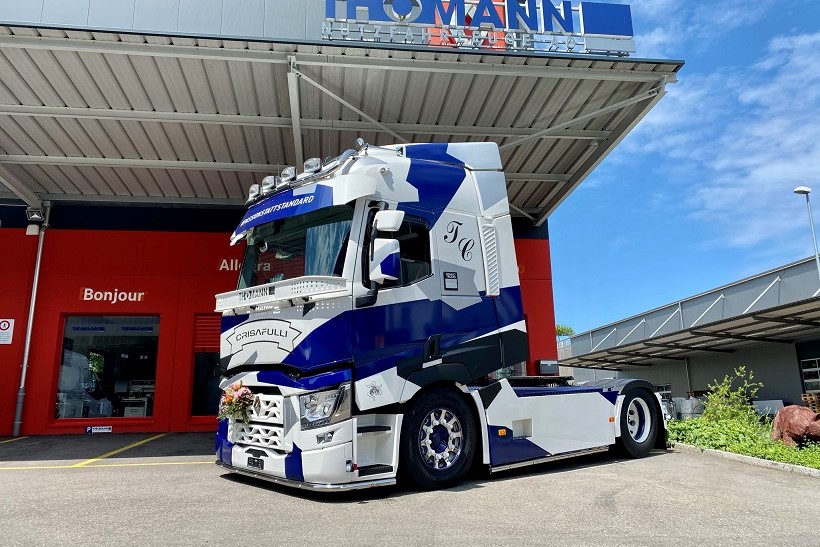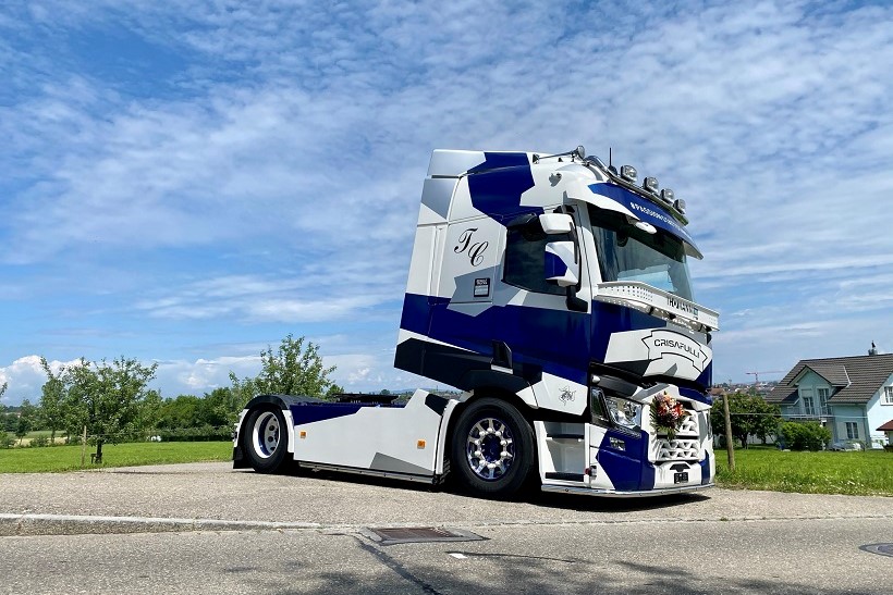 Vor rund zehn Jahren hat Salvatore Crisafulli den Schritt in die Selbstständigkeit gewagt. Inzwischen gehören fünf Lastwagen zu seiner Flotte, vier davon sind Renault Trucks. Diese Marke erfüllt seine hohen Ansprüche. Und einer, der das Besondere sucht, wurde in der Vergangenheit schon fündig, als er eine Sattelzugmaschine in Betrieb nahm, welche an jene für das Formel-1-Team von Peter Sauber anlehnte und eine ganz exklusive Ausstattung aufwies.