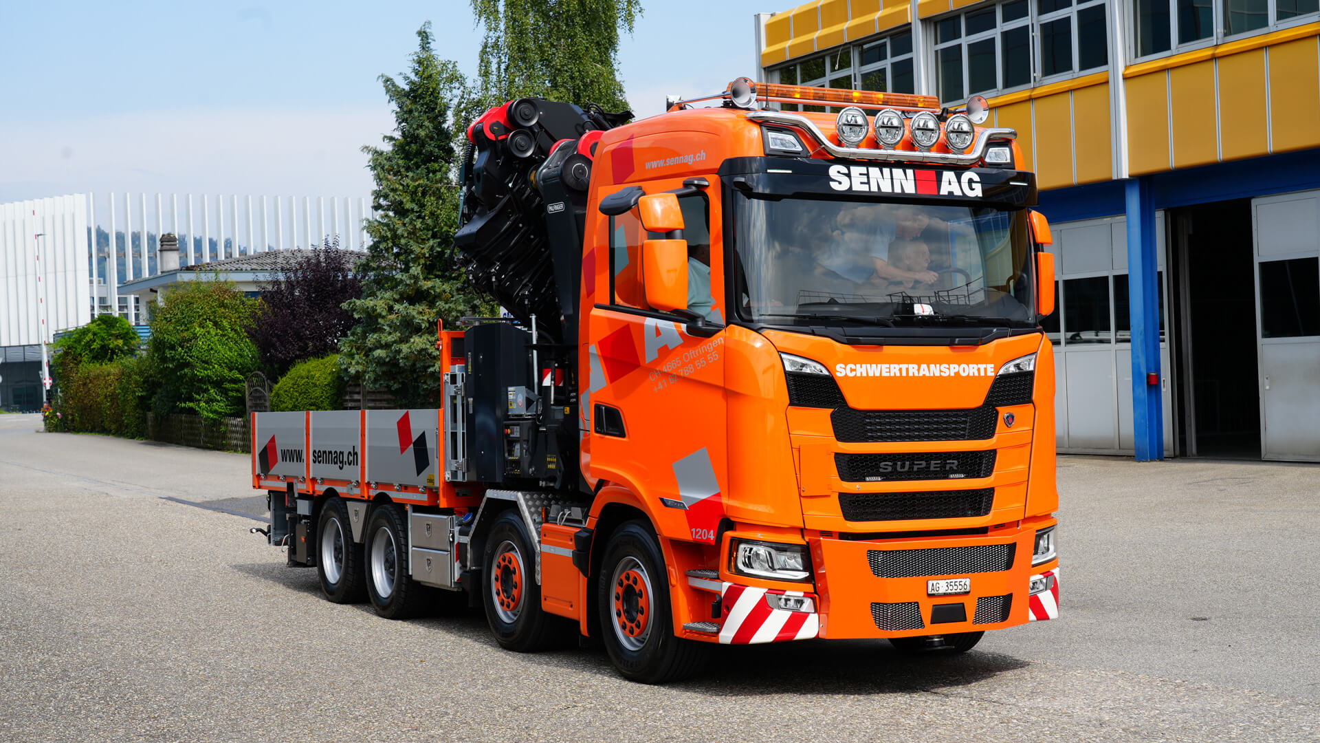Mit einem Scania 560S B 8x4 NB Kranwagen verstärkt das mittelländische Traditions-Unternehmen Senn AG ihren Fuhrpark, um noch effizienter und leistungsfähiger für ihre Kunden da zu sein, nach über 30 Jahren Scania-Abstinenz.