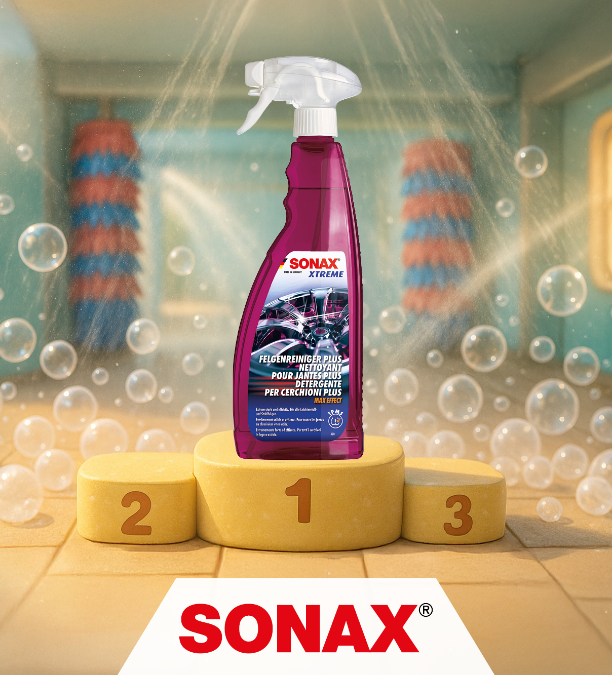 • Das Produkt von SONAX Chemie, der XTREME Felgenreiniger Plus (CHF 21.95), belegte den 1.Platz, dank seiner schnellen und effektiven Reinigungskraft, zudem auch in seiner Ausgewogenheit in allen Testkriterien.