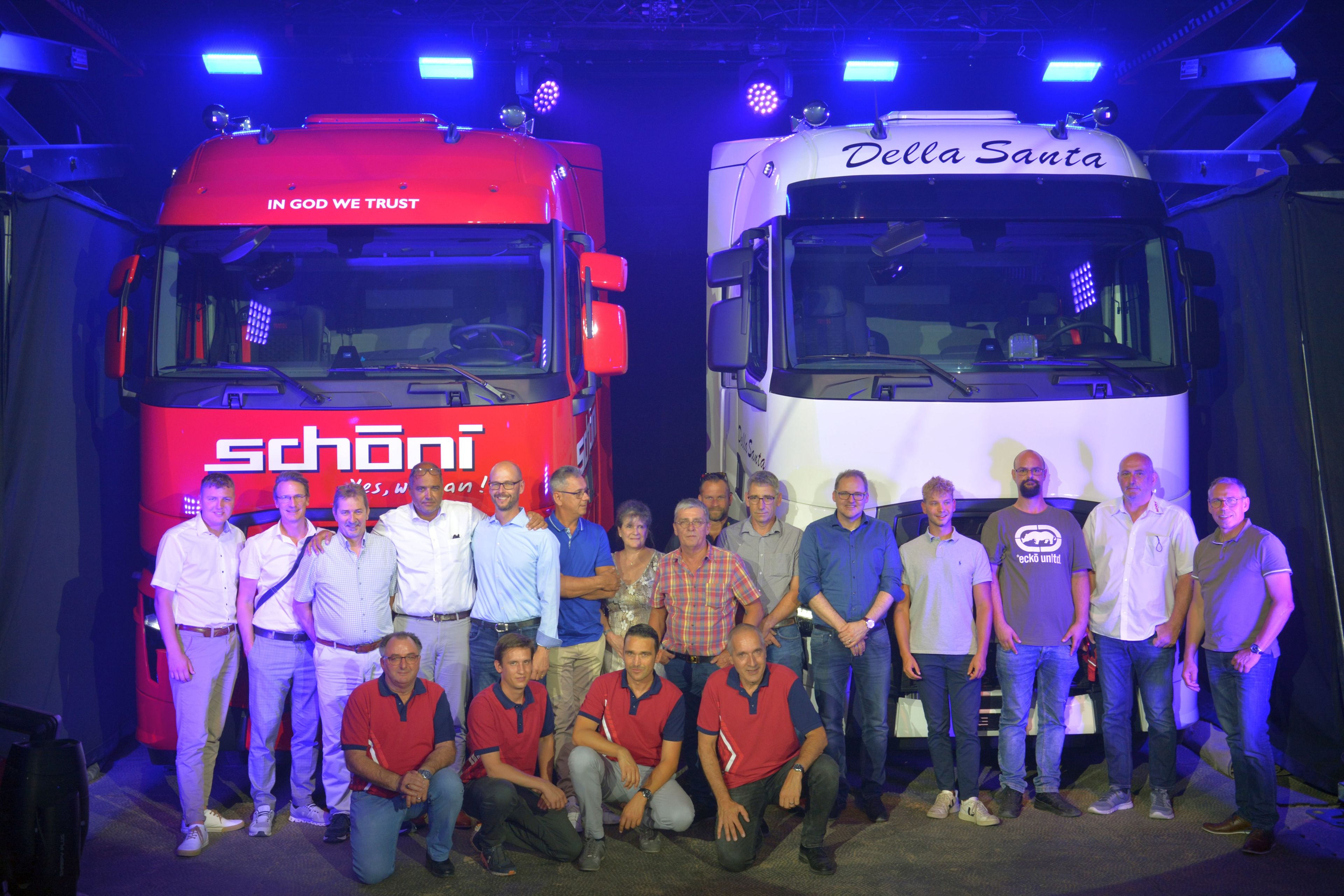 100 mit Biodiesel befeuerte Renault Trucks T480 Sattelzugmaschinen an die Schöni Transport AG : Das war einer der bisher grössten Aufträge von Renault Trucks (Schweiz) AG. Zwei Fahrzeuge – ein rot lackierter für Schöni und ein weisser für Della Santa, mit dem Schöni 2018 eine Fahrgemeinschaft eingegangen ist, nahm Daniel Schöni im Zelt des Zirkus Knie auf der Berner Allmend entgegen, symbolisch für die gesamte Flotte.