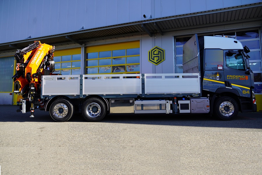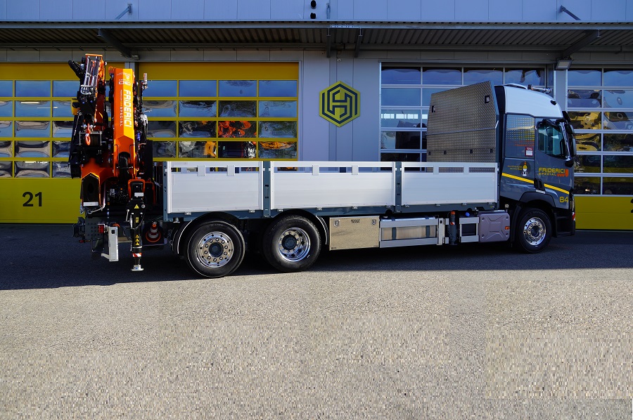 Gegenwärtig erneuert die Friderici Spécial S.A. ihre Flotte an schweren Lastwagen um sieben neue Renault Trucks T520 und C520. Von den für Schwer- und Spezialtransporte vorgesehenen Zugwagen sind zwei in der Achskonfiguration 6x2 und drei als 6x4 aufgestellt. Die 6x2-Fahrzeuge sind auf ein Gesamtgewicht von 70 Tonnen zugelassen, jene in der Antriebsvariante 6x4 auf 110 Tonnen. Hinzu kommen zwei Motorwagen 6x2 mit den Aufbaukranen des Modells 395 - 5S von Effer. Dieses Modell ist mit dem Progresssystem ausgestattet, welches eine vollständige elektronische Steuerung des Krans ermöglicht. Auf 18 Meter ausgefahren stemmt es beachtliche 2,1 Tonnen. Mit Jib werden 28 Meter bei einer maximalen Traglast von 685 Kilo erreicht. Der raffinierte Gesamtaufbau, stammt von Hodel Betriebe in Grosswangen.