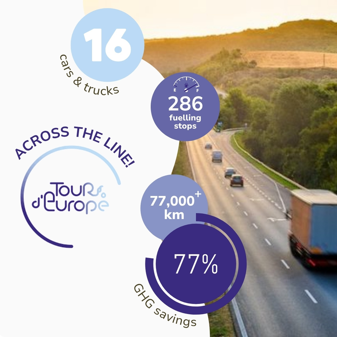 Im Rahmen einer europaweiten Roadshow legten mit erneuerbaren Kraftstoffen betriebene Personenwagen und Lastwagen insgesamt 77'500 Kilometer in 16 Ländern zurück. 84 % der Gesamtstrecke wurden mit 100 % erneuerbaren Kraftstoffen gefahren – dies führte zu einer Treibhausgasreduktion (GHG) von 67 % bezogen auf die gesamte Distanz.