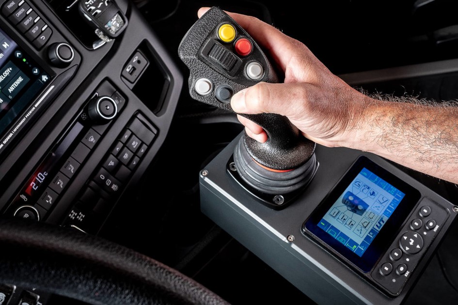 Chauffeur Martin Diethelm, Bruno Mattle AG, konnte die neue Steuerung bereits in der Praxis testen. Er zeigt sich begeistert: Die Funktionen würden das Handling massgeblich erleichtern, die Sicherheit verbessern und nicht zuletzt eine Zeiteinsparung bringen. Zudem sei die Steuerung problemlos mit nur einer Hand bedienbar.