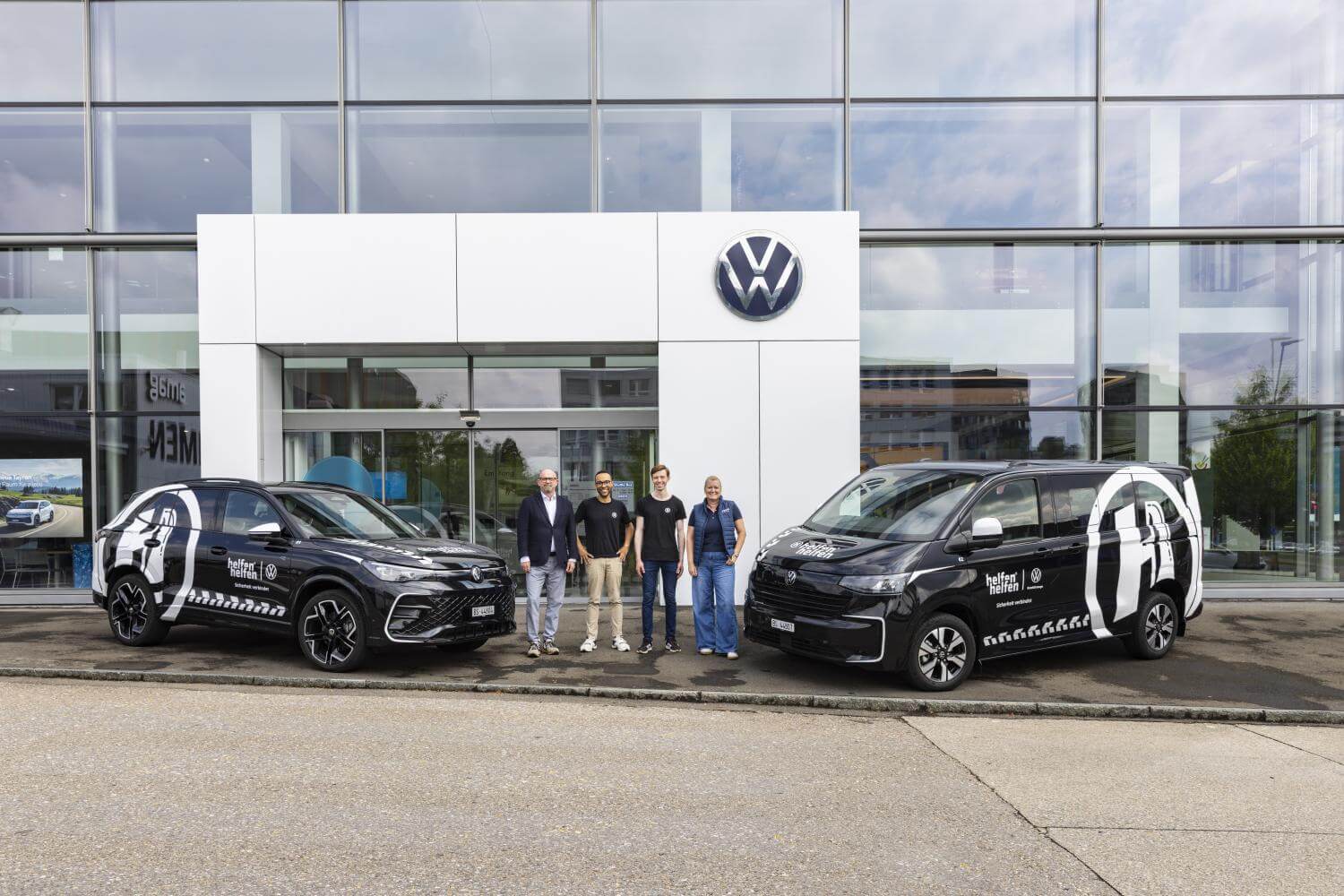 Volkswagen und VW Nutzfahrzeuge unterstützen die gemeinnützige Organisation helfen helfen Schweiz mit zwei Fahrzeugen. Im Rahmen der Partnerschaft erhält helfen helfen Schweiz einen neuen Tiguan und einen neuen Caravelle. Die neue Mobilitätslösung ermöglicht es helfen helfen Schweiz, Projekte in den Bereichen Aufklärung, Forschung und Vernetzung in der ganzen Schweiz umzusetzen. Ziel ist es, jene Menschen zu stärken und sichtbar zu machen, die sich täglich für ein sicheres und solidarisches Zusammenleben einsetzen.
