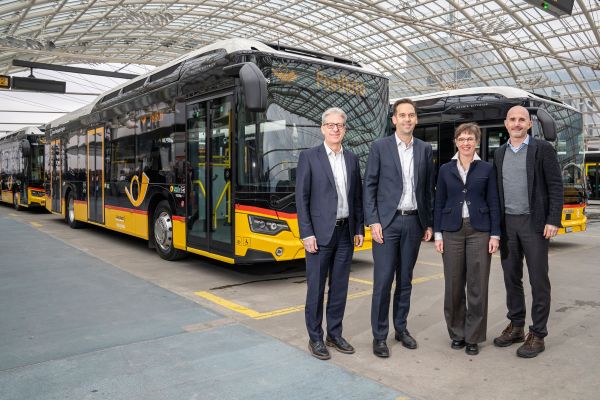 Die ersten Scania Elektropostautos in Graubünden sind auf der Strasse