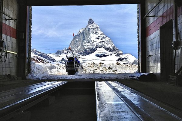 Mit der Gondel zum Lift: VEGA-Montage mit Blick aufs Matterhorn