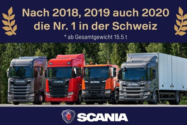 Scania Schweiz auch 2020 Marktführer für Nutzfahrzeuge
