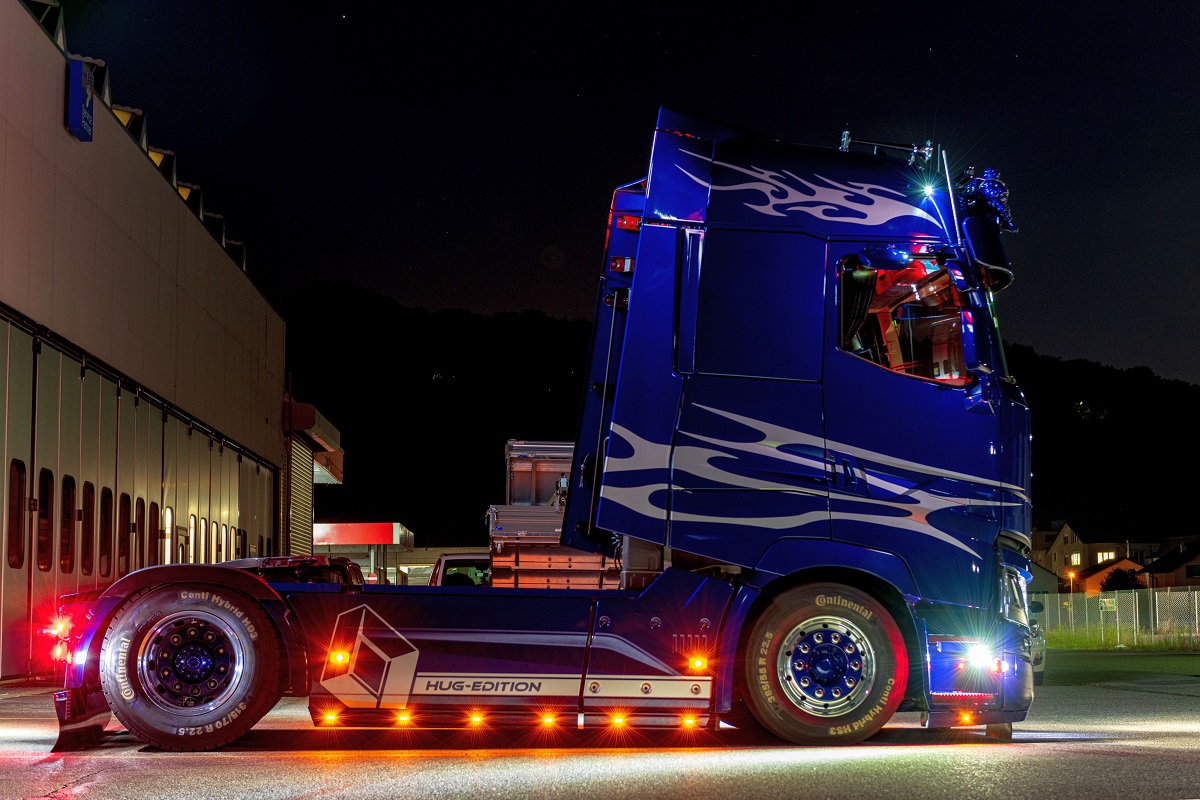 Après avoir pris l'envol comme indépendant avec un train routier bâché d'occasion avec lequel il transportait du fourrage dans le domaine agricole, un an plus tard, Jan Hug a envie de se lancer dans le transport international. Déjà à l'époque, Jan Hug était persuadé que le transport (international) de marchandises en vrac était promis à un bel avenir avec une rentabilité assurée. Au fil des ans, l'entreprise s'est spécialisée dans le transport des marchandises en vrac. Des semi-remorques à fond mouvant avec lesquels il transporte des marchandises palettisées, des produits sidérurgiques longs, des bobines de papier, etc., lui donnent la flexibilité nécessaire. « Je peux ainsi rivaliser avec la concurrence internationale », révèle le patron d'entreprise avec un brin de malice. Les camions de la société Jan Hug Transporte GmbH desservent aussi bien la Suisse que l'Allemagne, le Benelux, la France et l'Autriche. Chaque véhicule parcourt en moyenne entre 100'000 et 120'000 kilomètres par année, un kilométrage élevé mais en rapport avec les activités de cette entreprise.