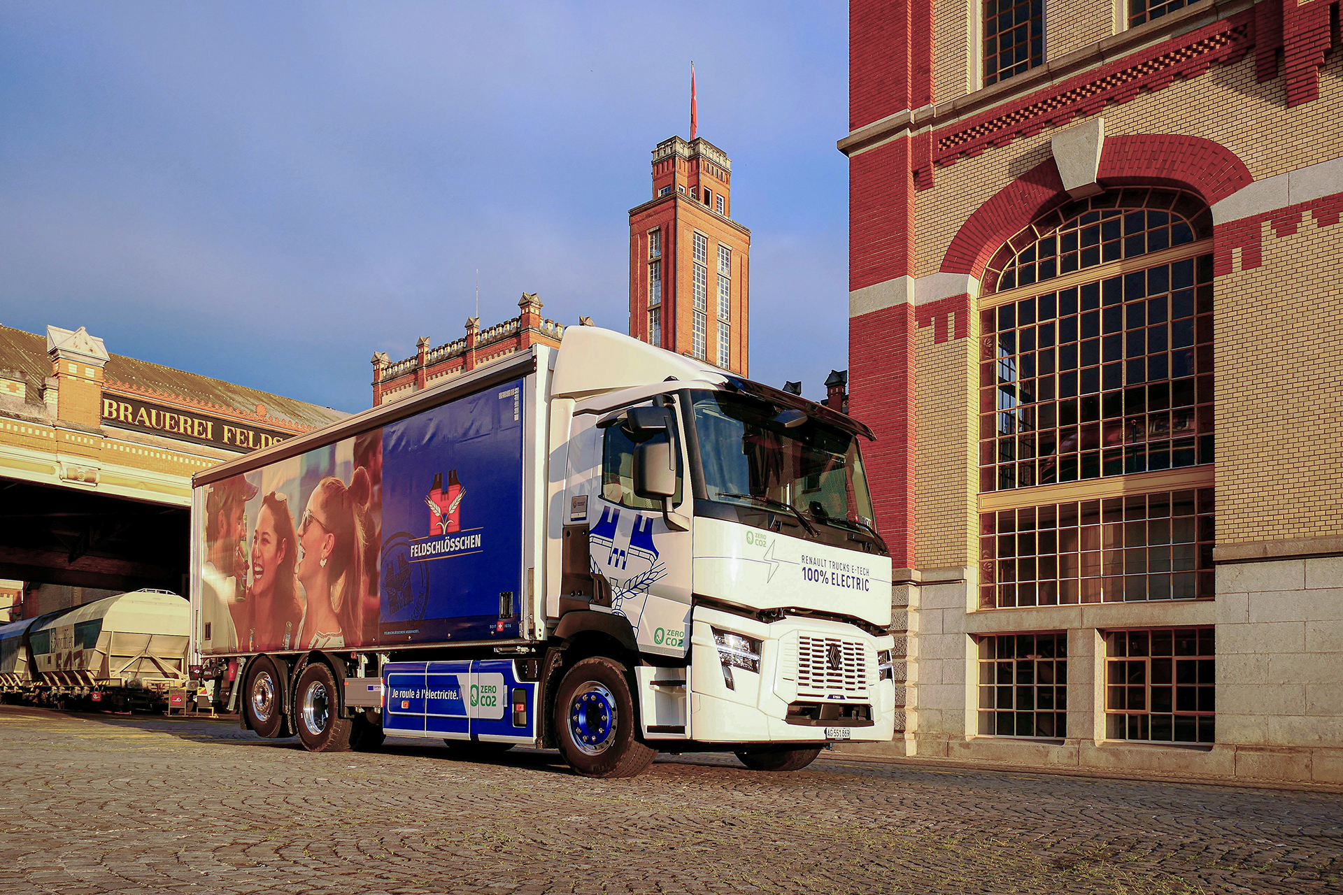 En matière de mobilité électrique, Feldschlösschen Boissons SA à Rheinfelden peut se targuer de faire partie des pionniers. L'entreprise, riche en traditions, a commencé à acquérir ses premières expériences avec un camion électrique dès 2013. A la fin de l'année 2020, le premier des 20 camions Renault Trucks 100 % électriques a été livré pour la distribution fine. Récemment, un Renault Trucks E-Tech T est venu s'ajouter à la liste, afin de tester dans quelle mesure l'utilisation de camions 100 % électriques est adaptée aux longues tournées quotidiennes.