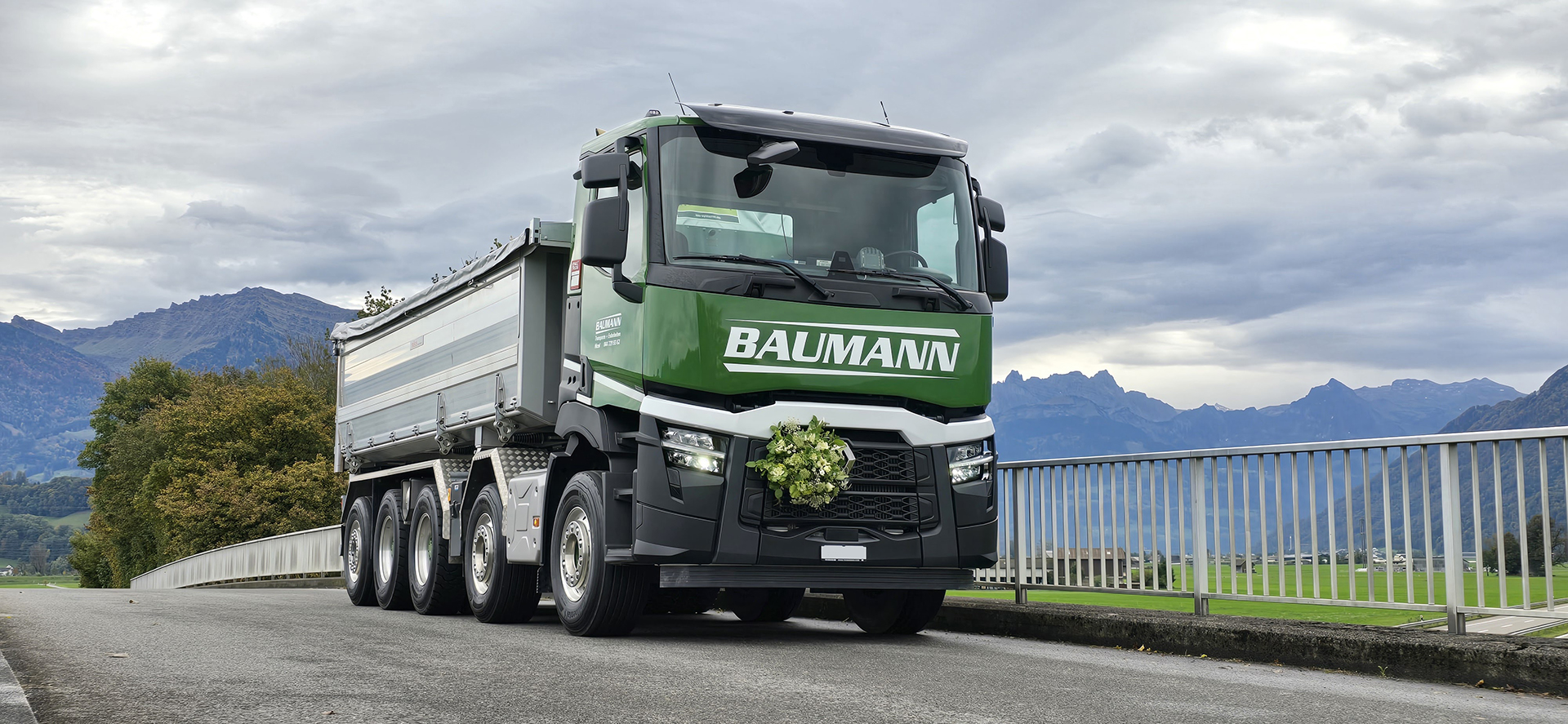 L'entreprise Baumann Transporte + Erdarbeiten AG, située à Hirzel, vient d’ajouter un cinquième camion Renault Trucks à sa flotte: un C520 10x4 équipé d’une tri-benne. Un autre camion de la même marque est déjà en commande, preuve de la grande satisfaction de l’entreprise.