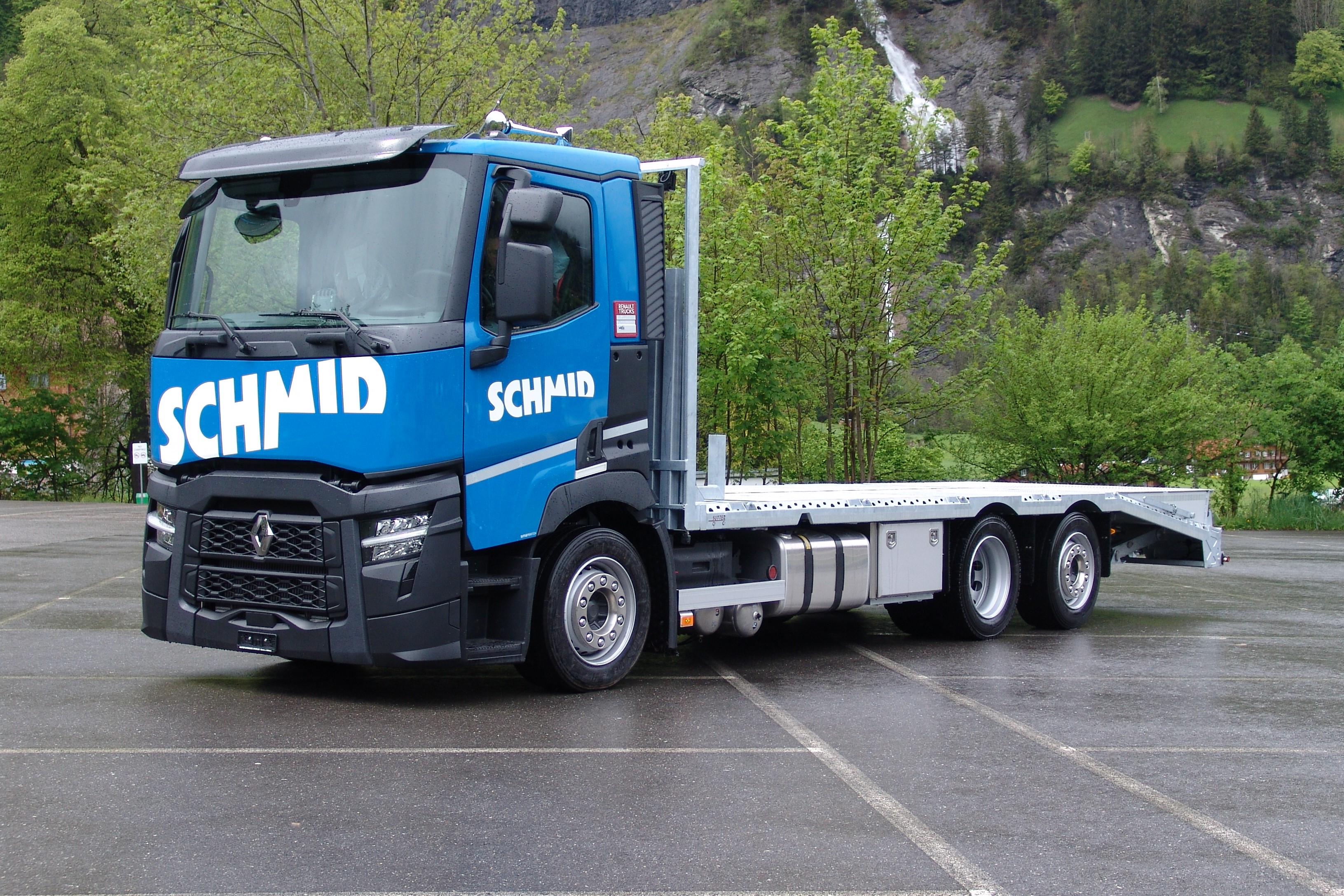 Forte de plus de 95 ans d'expérience dans la construction de véhicules, la société Sutter AG Lungern Fahrzeugbau a conçu et fabriqué une superstructure multifonctionnelle pour Schmid Bauunternehmung AG. Le tout nouveau camion avec plate-forme de chargement est également un taxi-machines.