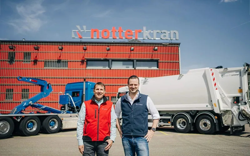 Les deux entreprises prévoient des synergies à long terme, par exemple dans le secteur du service après-vente ou des compétences de Notterkran Group AG en tant que constructeur de véhicules. Aujourd’hui déjà, des véhicules de ramassage d’ordures sont assemblés pour le compte du groupe Kirchhoff au centre Notterkran situé à Ebersbach/Sachsen, lequel groupe est actionnaire de Contena-Ochsner AG. « Depuis plus de 15 ans, Contena-Ochsner AG travaille en coopération avec Notterkran AG sur des structures de grues de chargement et d’appareils à bras en association avec des véhicules de ramassage d’ordures » déclare Renato Heiniger.