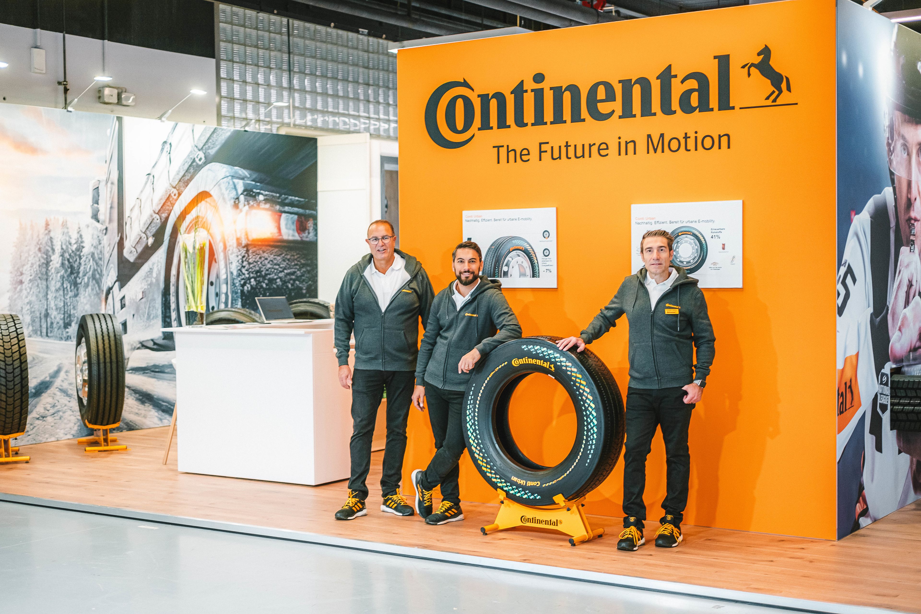 Le Conti Urban symbolise en quelque sorte l'esprit du temps et ouvre la voie de la prochaine étape de développement des pneus pour véhicules utilitaires. La durabilité est un thème majeur. Ainsi, le Conti Urban est fabriqué à 70% à partir de matériaux recyclés. Dans l'esprit de l'environnement et en vue de répondre aux exigences de l'e-mobilité, la résistance au roulement a été améliorée de 7 pour cent et une plus grande efficacité énergétique a été recherchée. Le pneu est équipé d'un capteur qui surveille la pression des pneus et qui peut même être consulté via une application. Actuellement, le Conti Urban est encore en phase de test dans toute l'Europe, et des expériences sont également en cours à Schaffhouse avec un bus urbain, ce qui devrait contribuer à l'optimisation finale. Et ce qui est en train d'être mis en place pour les bus urbains devrait également influencer le développement futur des pneus pour poids lourds.