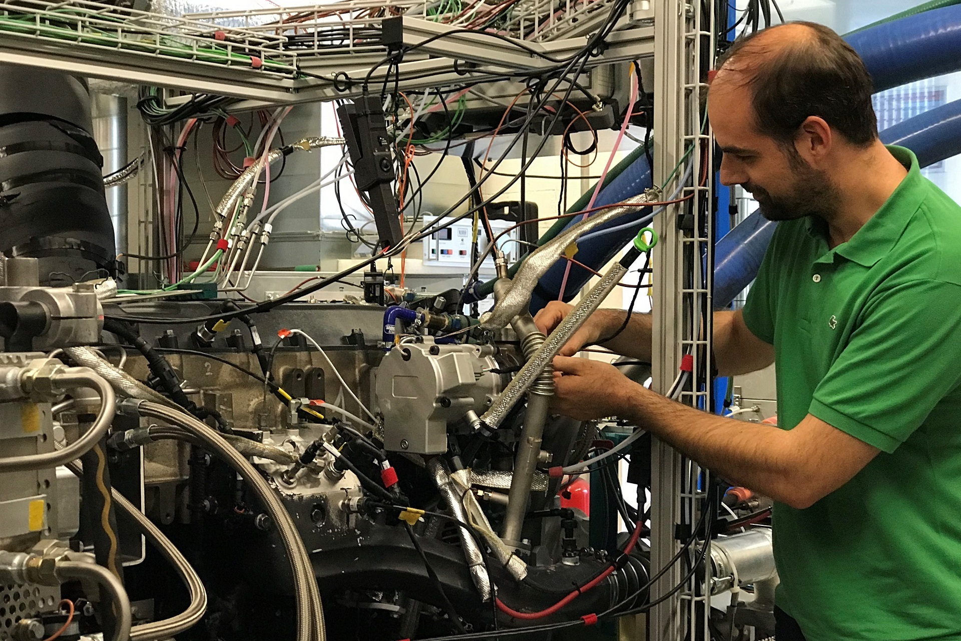Un carburant alternatif possible au diesel est le diméthyléther: cette substance hautement volatile peut être produite à partir d'énergie renouvelable et brûle très proprement. L'Empa fait des recherches sur ce nouveau concept de conduite avec un moteur d'essai spécial.