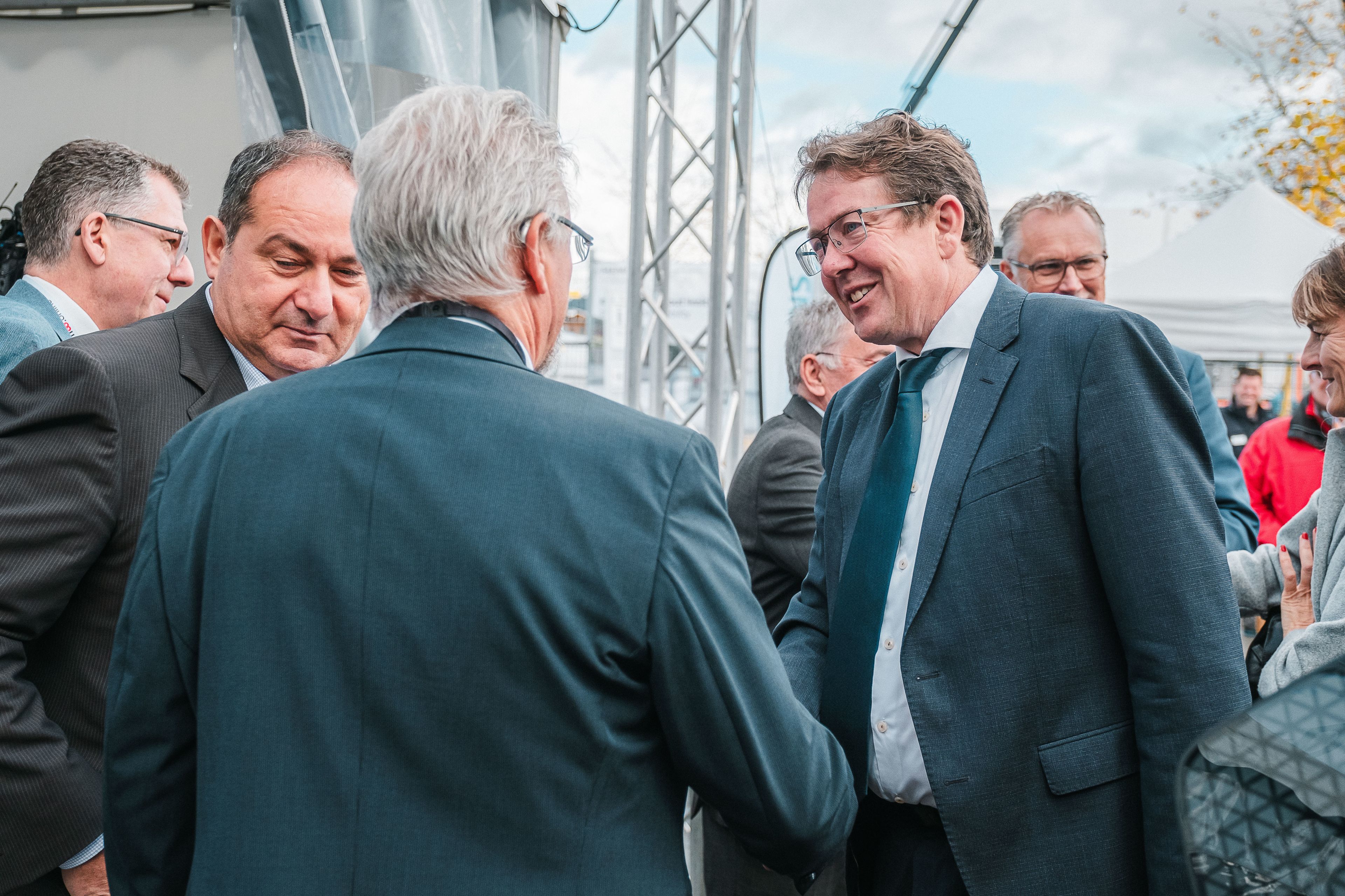 Peu avant 12h00, le président du comité d'organisation Dominique Kolly et le directeur du salon Jean-Daniel Goetschi ont accueilli le ministre de l'environnement et des transports au TestDrive.