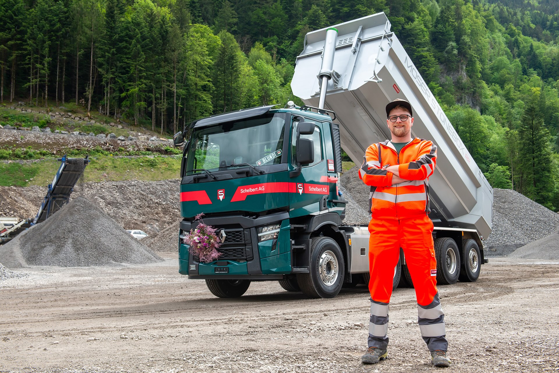 La société Schelbert AG Tief- und Strassenbau, dont le siège se trouve à Muotathal, a récemment intégré son premier Renault Trucks dans sa flotte. Il s'agit d'un Renault Trucks C520 P10x4. La décision d'acquérir un Renault Trucks repose sur une histoire particulière.