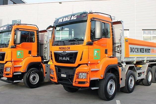 Deux MAN TGS compacts sont depuis quelques mois utilisés quotidiennement par PK Bau AG sur une grande variété de chantiers tels que des démolitions, démantèlements, grands bâtiments, dynamitages, excavations et constructions de routes. La superstructure des deux bennes basculantes a été construite par Sutter AG, Lungern. La possibilité de basculer la benne vers la gauche et vers l’arrière pendant le déchargement facilite sensiblement le travail et offre une vitesse maximale lors du transport de matières en vrac.
