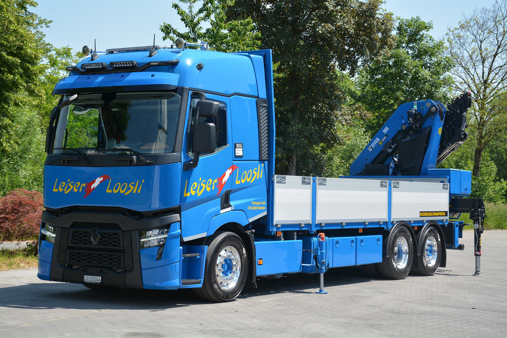 Aujourd'hui, la flotte d'André Leiser et de Bruno Loosli chez Leiser & Loosli Transport AG se compose de dix véhicules utilitaires lourds, dont huit Renault Trucks. Mais d'où vient cette tendance à choisir Renault Truck ? Bruno Loosli déclare: « Nous conduisons des Renault Trucks depuis 1996. En fait, nous sommes des clients de la première heure de Renault Truck. C'est ainsi que nous avons acheté le dernier Renault Magnum, le « Legend » qui fait toujours partie de notre flotte et dont nous ne sommes pas prêts de nous en séparer. Les véhicules sont très robustes, fiables et performants. Le nouveau Renault Trucks T 520 remplace un Renault Trucks Premium après dix ans de bons et loyaux services. Le garage est un autre point essentiel à nos yeux : avec la société Windlin, nous sommes très bien servis ». Le nouveau véhicule sera utilisé pendant une dizaine d'années pour le transport avec grue dans toute la Suisse, en partie avec une remorque, et parcourra entre 80 000 et 100 000 kilomètres par an. La charge utile est de 8,5 tonnes.