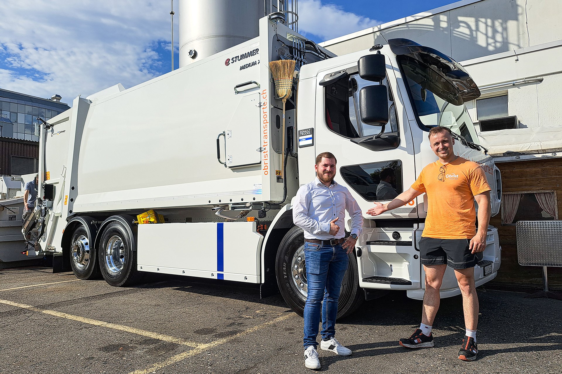 Dans le canton d'Argovie, Obrist Transport + Recycling AG est un acteur majeur de l'élimination et du recyclage des déchets respectueux de l'environnement. 70 collaborateurs et une flotte de 30 véhicules au total sont quotidiennement au service de la collectivité pour collecter les déchets en tout genre, que ce soit dans le secteur privé, commercial ou industriel. Obrist Transport + Recycling AG y apporte toute sa compétence en élaborant au cas par cas des concepts d'élimination adaptés aux besoins et en apportant ainsi une contribution importante à la protection de l'environnement. Le thème de la protection de l'environnement englobe également la composition de la flotte de véhicules. Dans ce domaine, Obrist Transport + Recycling AG a fait un pas important au printemps de l'année dernière : avec la mise en service du premier Renault Trucks E-Tech D Wide BOM P6x2 26T livré en Suisse, elle est entrée dans l'ère des véhicules 100 % électriques. Thomas Benz, membre de la direction, ne cache toutefois pas que la conversion de la flotte de véhicules s'est faite en grande partie sous la pression des clients, et en premier lieu des communes. « Lors des appels d'offres, le marché tend clairement vers des solutions écologiques », résume-t-il.