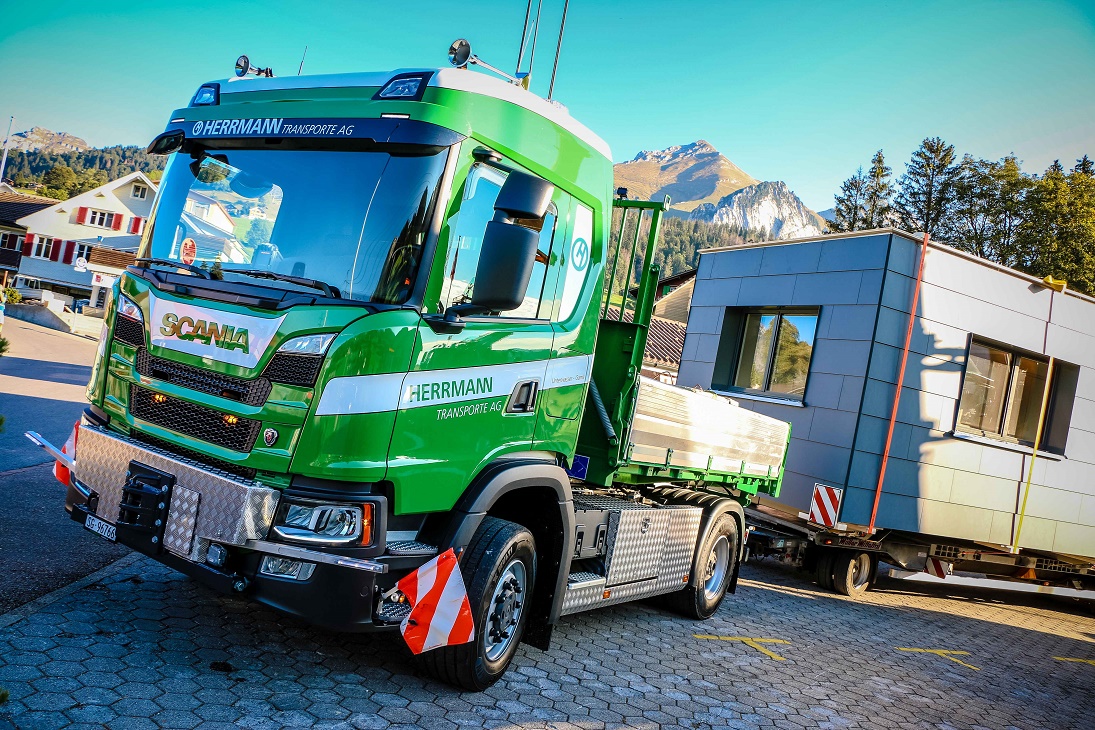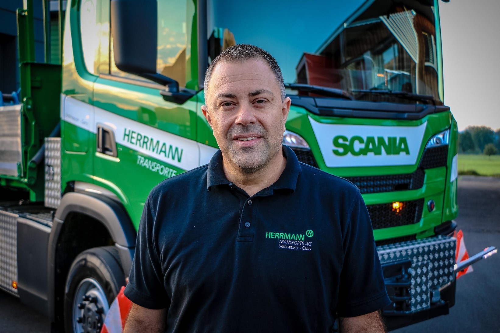 Environ la moitié de la flotte d'une vingtaine de véhicules utilitaires lourds de Herrmann Transporte AG à Unterwasser et Gams porte désormais le logo Scania sur la cabine. En raison de l'emplacement des deux sièges de la société à Unterwasser dans le Haut Toggenbourg et à Gams dans la vallée du Rhin saint-galloise, les véhicules sont engagés dans des domaines d'activité complètement différents.