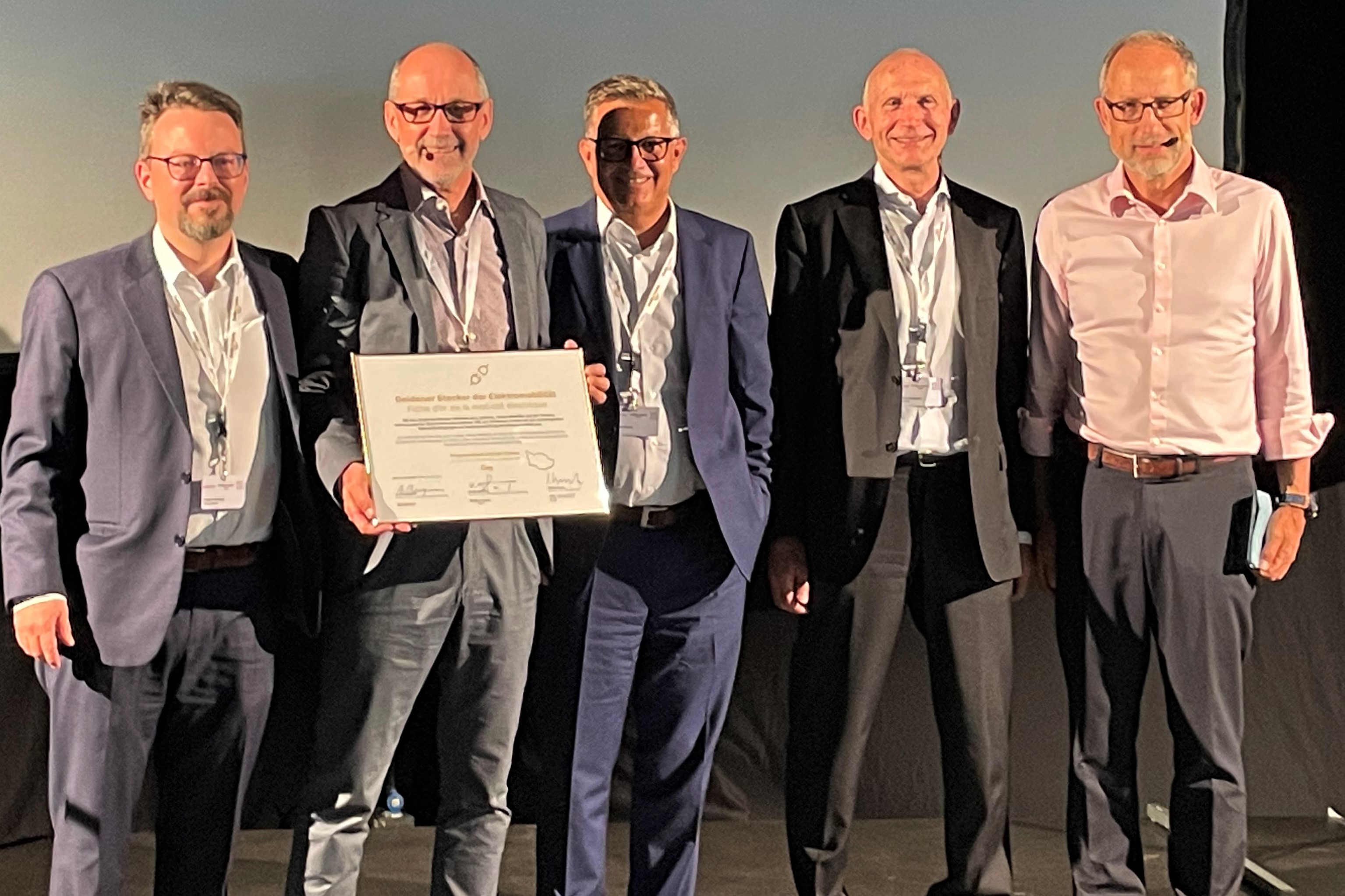 La Fiche d'or 2023 a été remise dans le cadre de la première Conférence suisse de la mobilité électrique, qui s'est tenue au Kubus Eventlokal à Berne. Les trois directeurs d'auto-suisse, de Swiss eMobility et de l'Association des entreprises électriques suisses AES ont fait chose commune pour la remise du prix et des félicitations au canton de Zoug aussi bien que pour l'organisation de la nouvelle rencontre nationale sur la mobilité électrique. Après la première, Andreas Burgener (auto-suisse), Krispin Romang (Swiss eMobility) et Michael Frank (AES) se sont montrés confortés d'avoir mis sur pied ensemble une conférence intersectorielle et globale sur l'électromobilité.