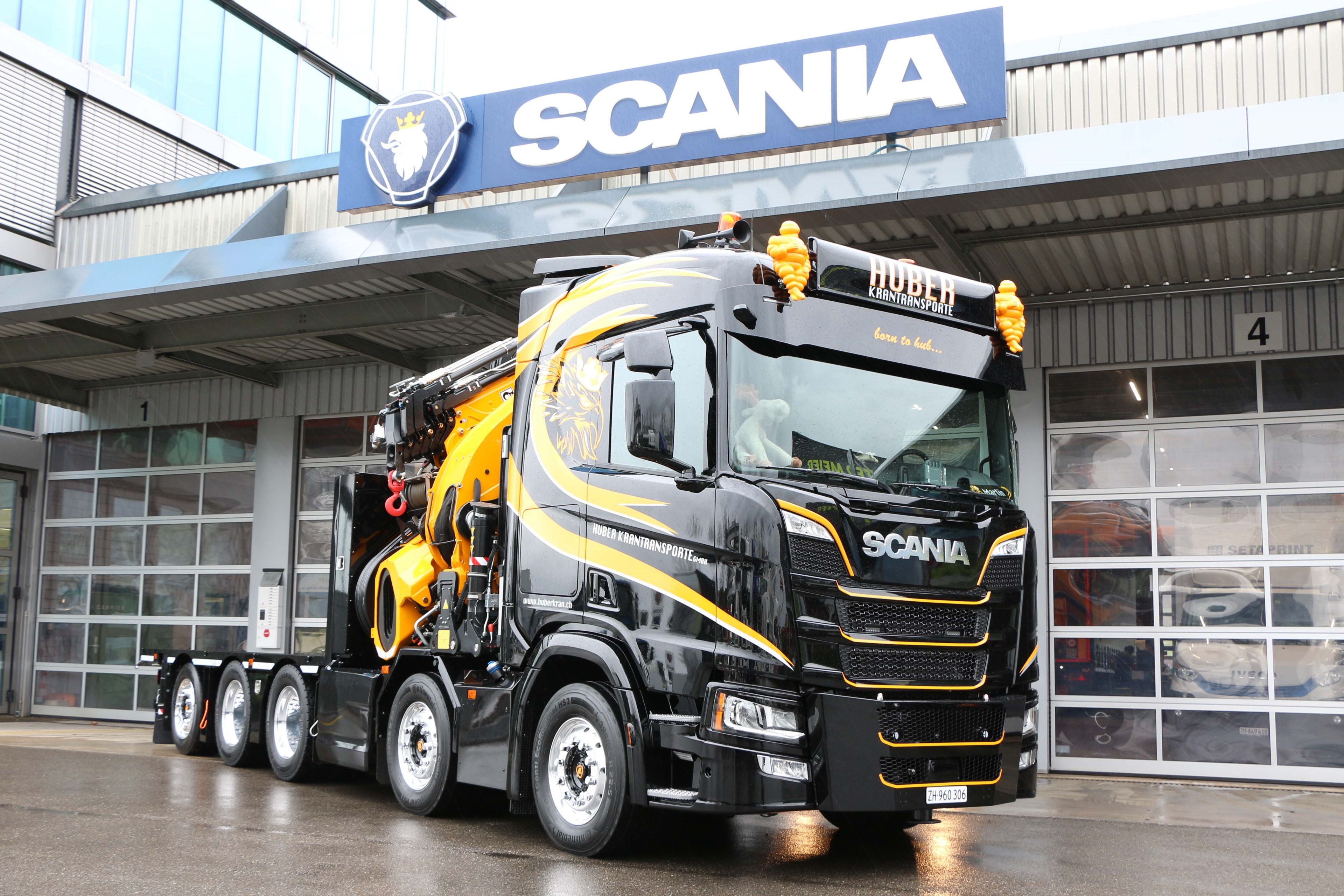 Le 3 avril 2020, il a pu prendre possession de son nouveau camion-grue Scania R650 B 10x4*6 NB et, le lundi suivant, effectuer pour la première fois des commandes de clients en tant qu'entrepreneur de transport indépendant. Jour après jour, semaine après semaine, Martin Huber a, grâce à son travail soigné et de haute qualité, gagné de plus en plus de nouveaux clients et élargi sa clientèle, ce qui lui a procuré un certain soulagement. Car chaque semaine, il fallait régler de nouvelles factures et honorer de nouvelles obligations. L'activité de transport par grue s'est développée de jour en jour, notamment grâce aux restrictions de personnel dues à la pandémie.