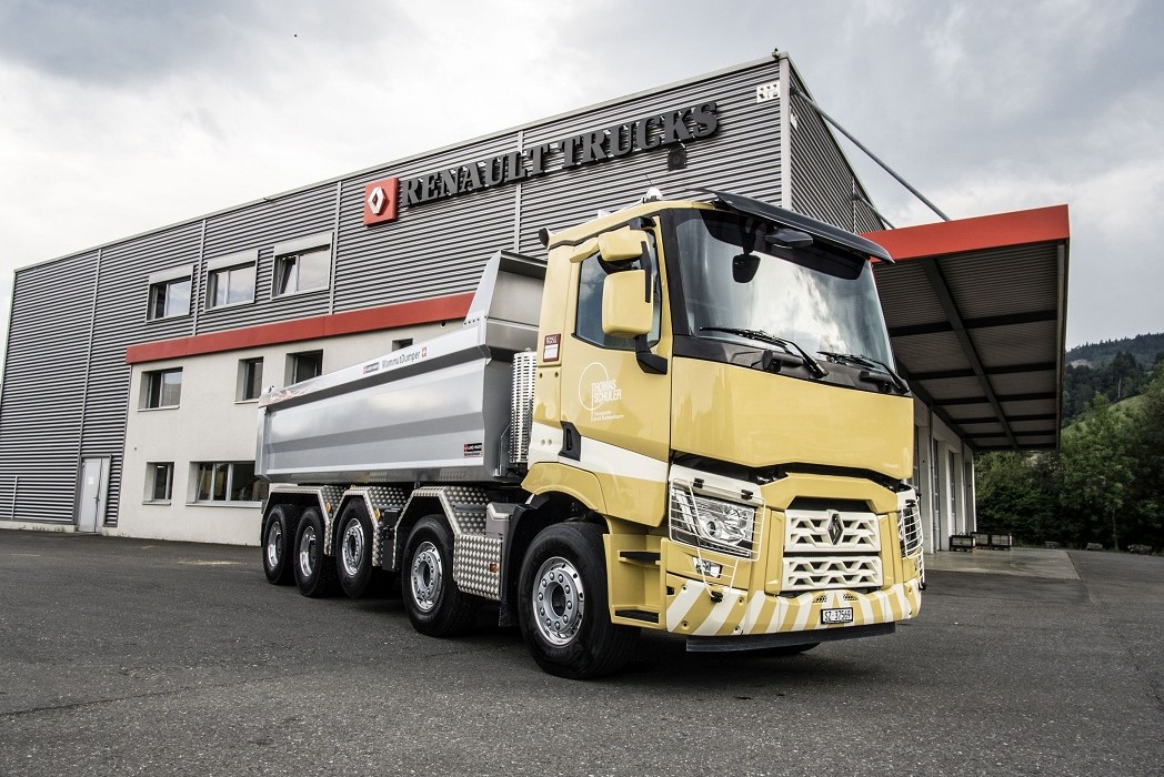 La flotte de la société Schuler Transporte à Rothenthurm comprend désormais un nouveau véhicule à cinq essieux de Renault Trucks. Avec son essieu poussé associé à une benne arrière de Lanz+Marti et une benne calorifugée pour enrobé de la société Graber Baumaschinen AG, le C520 P10x4 est parfaitement armé pour mener à bien ses missions.