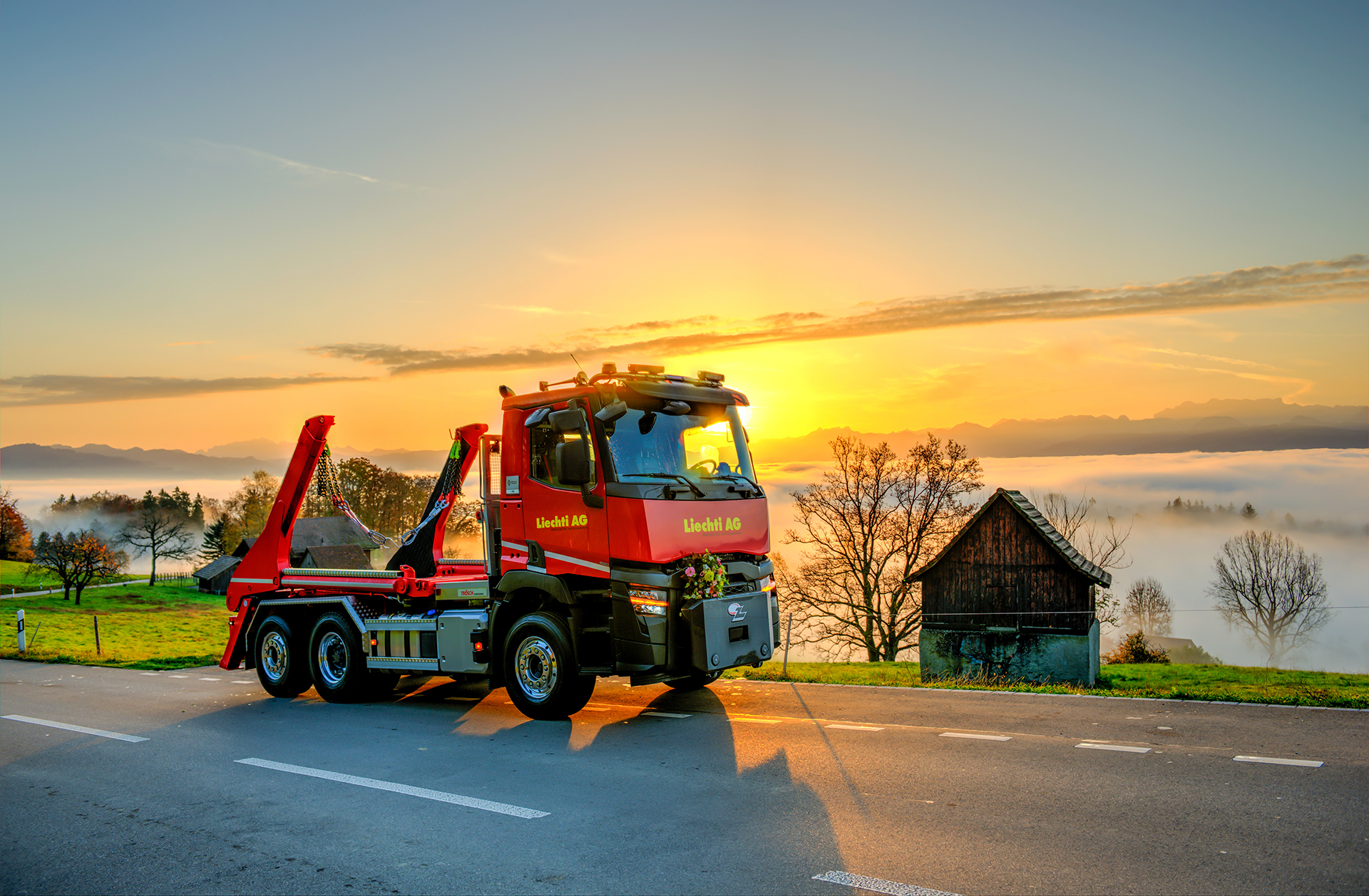 L’acquisition récente d’un Renault Trucks C440 P6x2 témoigne de la fidélité de Liechti AG envers la marque, motivée par des années d'expérience positive. «Grâce aux conseils et au service de Thomann Nutzfahrzeuge AG, nous n'avons jamais eu de raisons d'être déçus, bien au contraire!», explique le chef d’entreprise. «Les véhicules eux-mêmes répondent également à tous nos critères», ajoute-t-il. Destiné principalement au transport de bennes et à la livraison sur les chantiers, ce nouveau Renault Trucks C440 est également préparé pour le service hivernal grâce à son équipement de déneigement et d'épandage de sel.