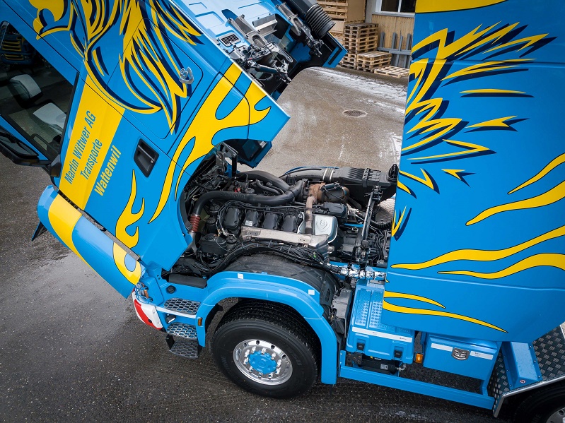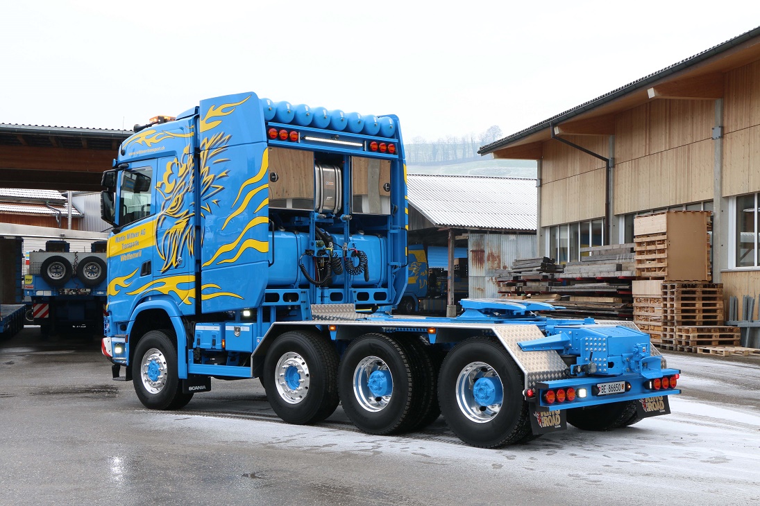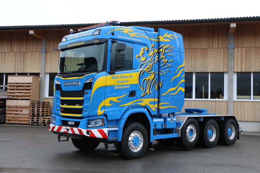 Grâce à une étroite collaboration entre Martin Wittwer AG, Scania Suisse sAAG et Scania CV AB à Södertälje, un projet souhaité depuis longtemps a pu devenir réalité : la construction d'un tracteur semi-remorque pour transports lourds Scania Heavy Duty Truck.