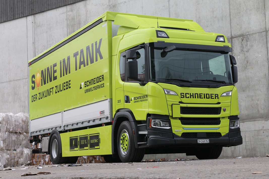 Avec la mise en service d'un premier Scania 25P B 4x2 NB Battery Electric Vehicle (BEV), Schneider Umweltservice AG a pour la première fois mis en service un véhicule utilitaire lourd entièrement électrique, construit sur la chaîne de production normale.